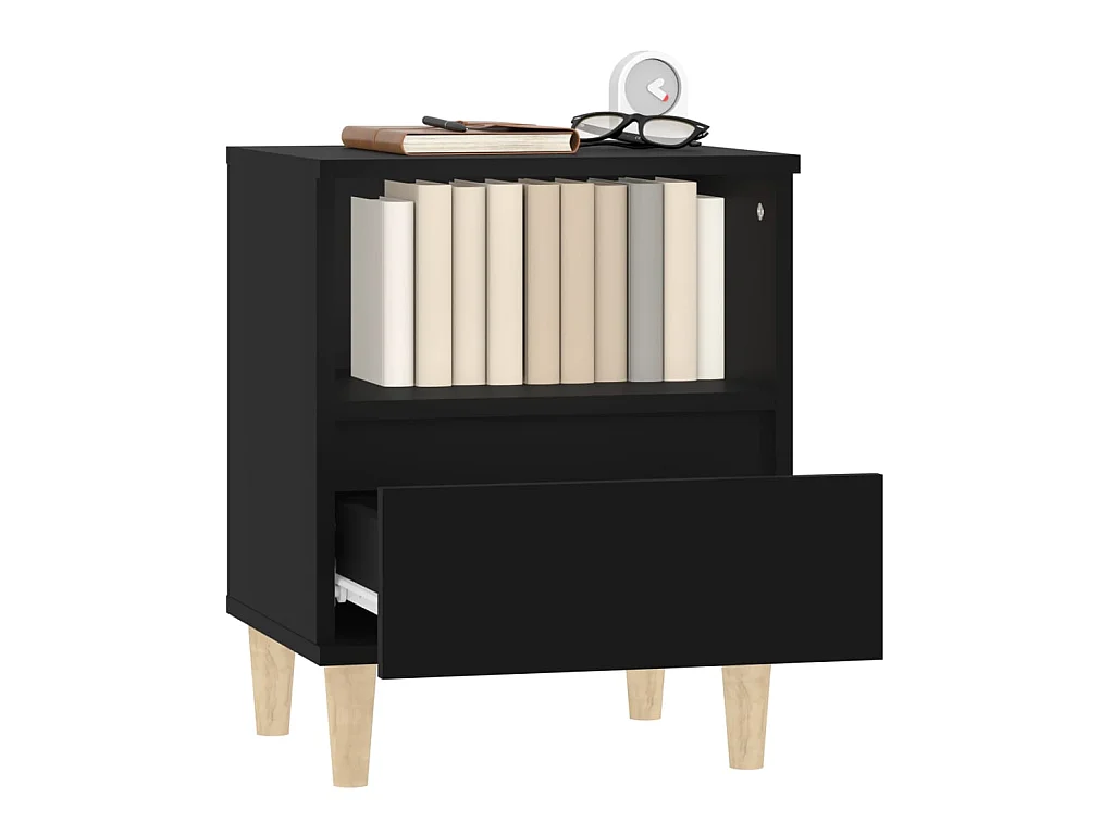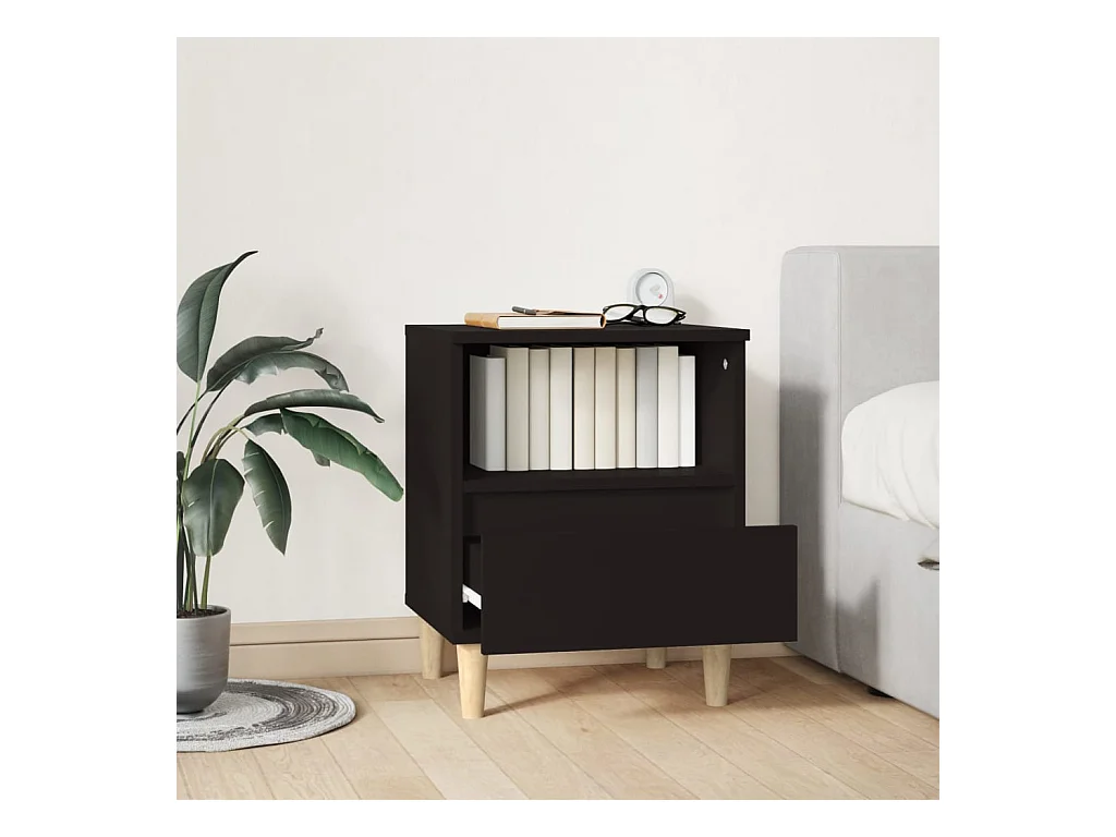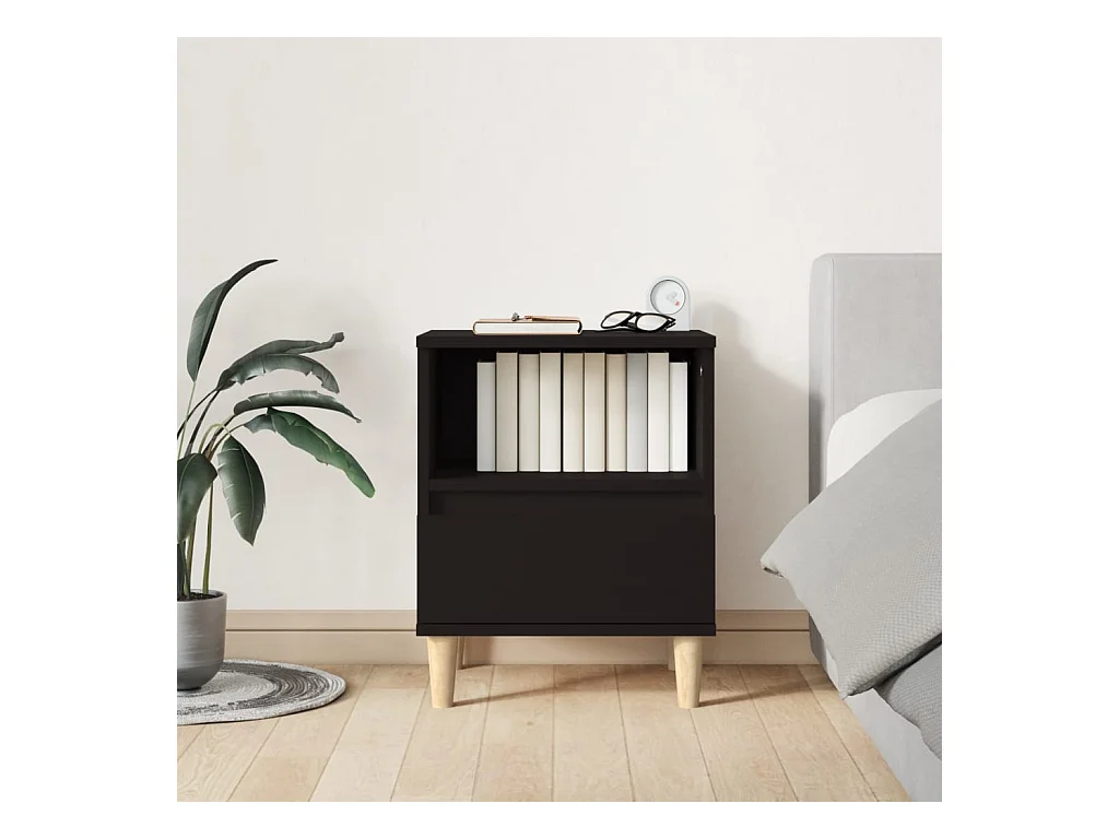Mesita de noche madera de ingeniería negro 40x35x50 cm ES31390