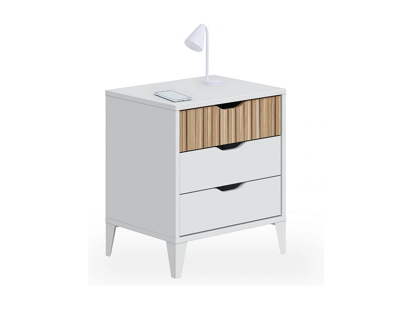 Mesita de noche Numa 3 cajones Blanco - Oak Soft