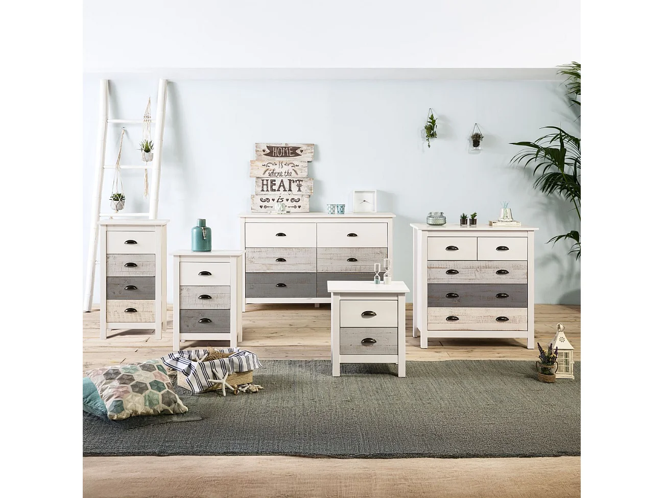 Mesita de noche Ocean 3 cajones Blanco - Vintage Colors