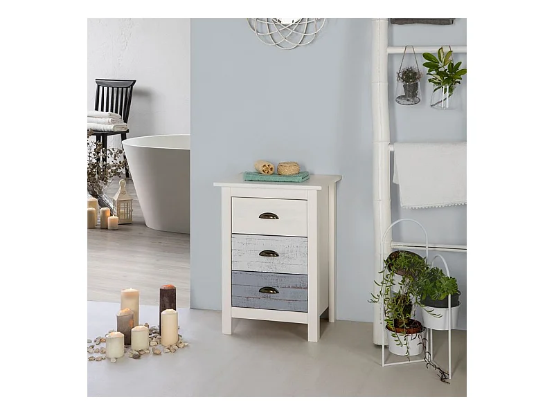 Mesita de noche Ocean 3 cajones Blanco - Vintage Colors