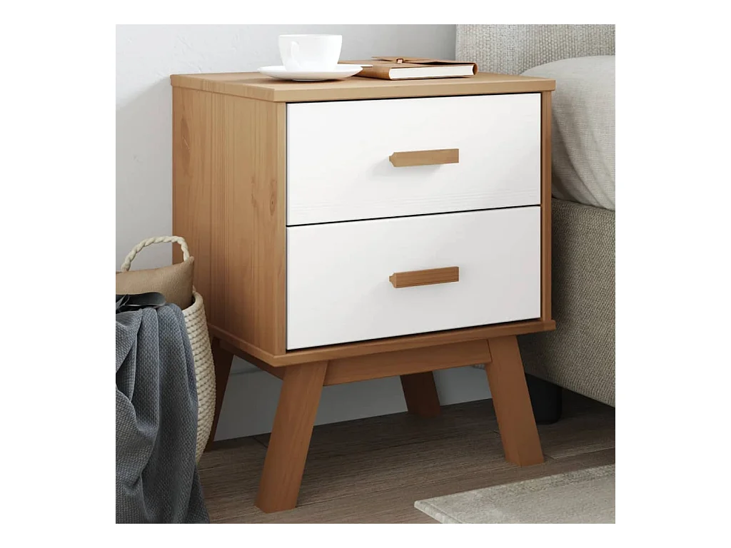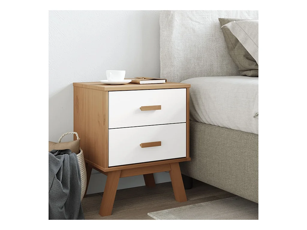 Mesita de noche OLDEN madera maciza de pino blanco y marrón ES911536