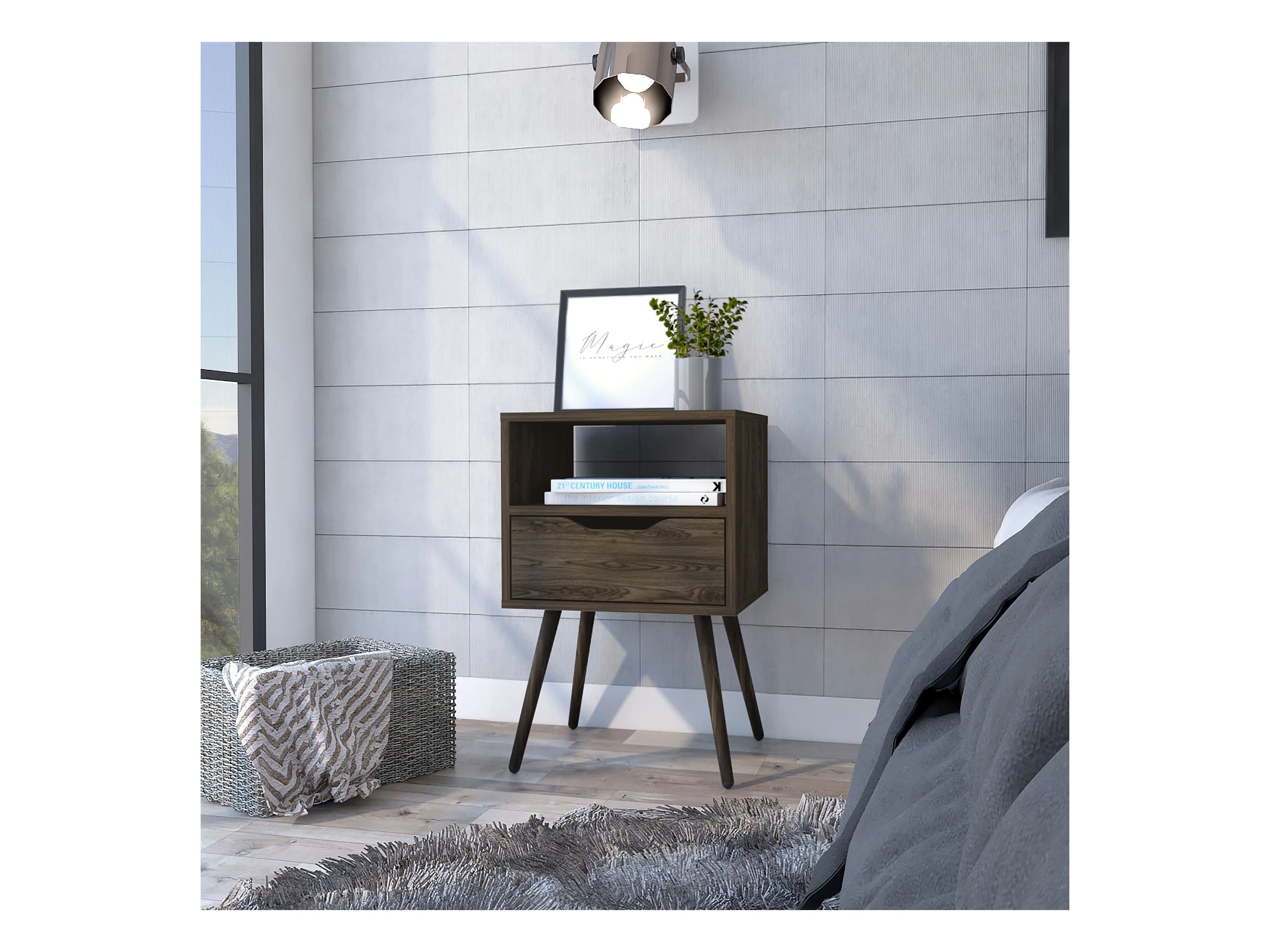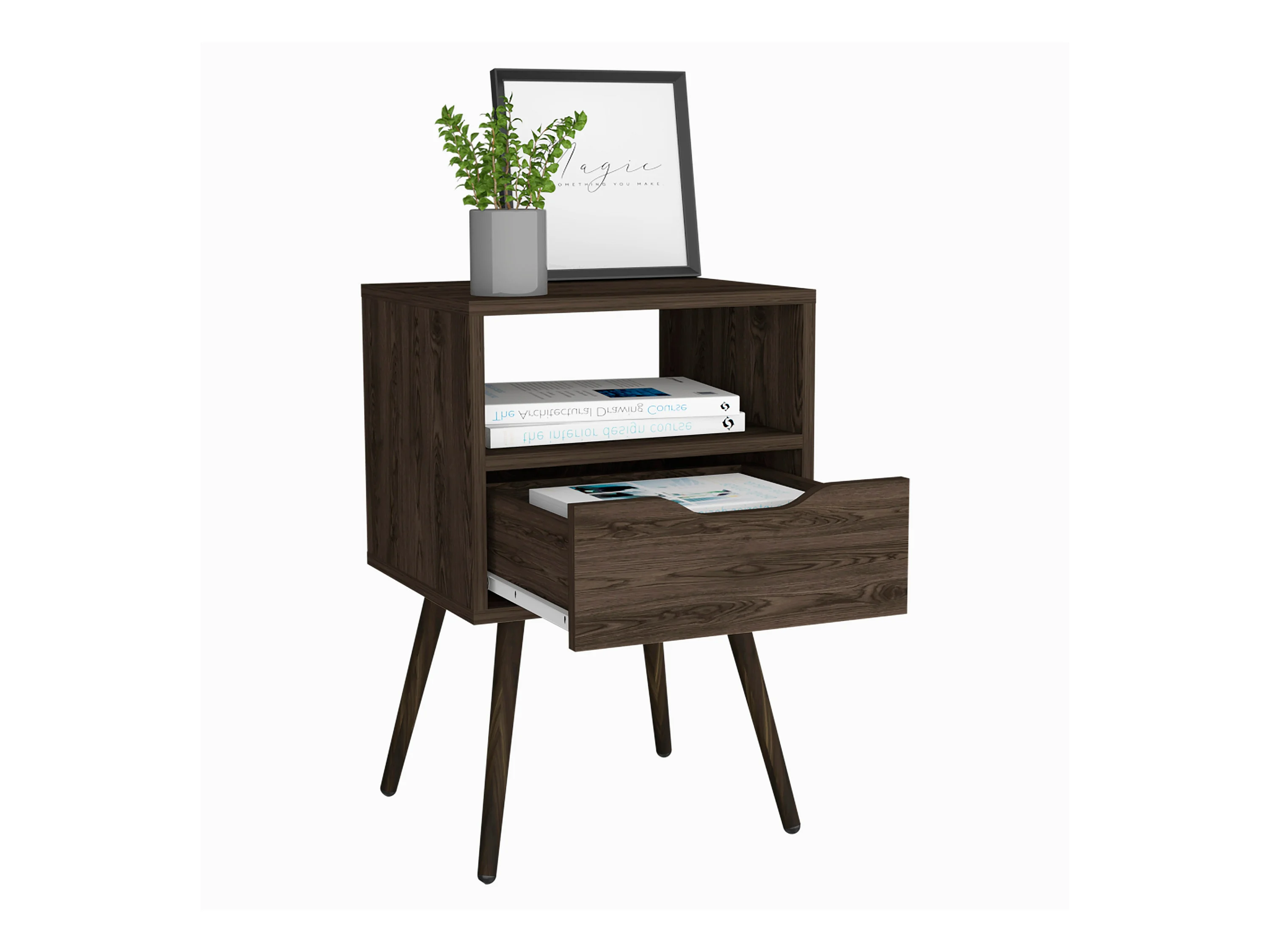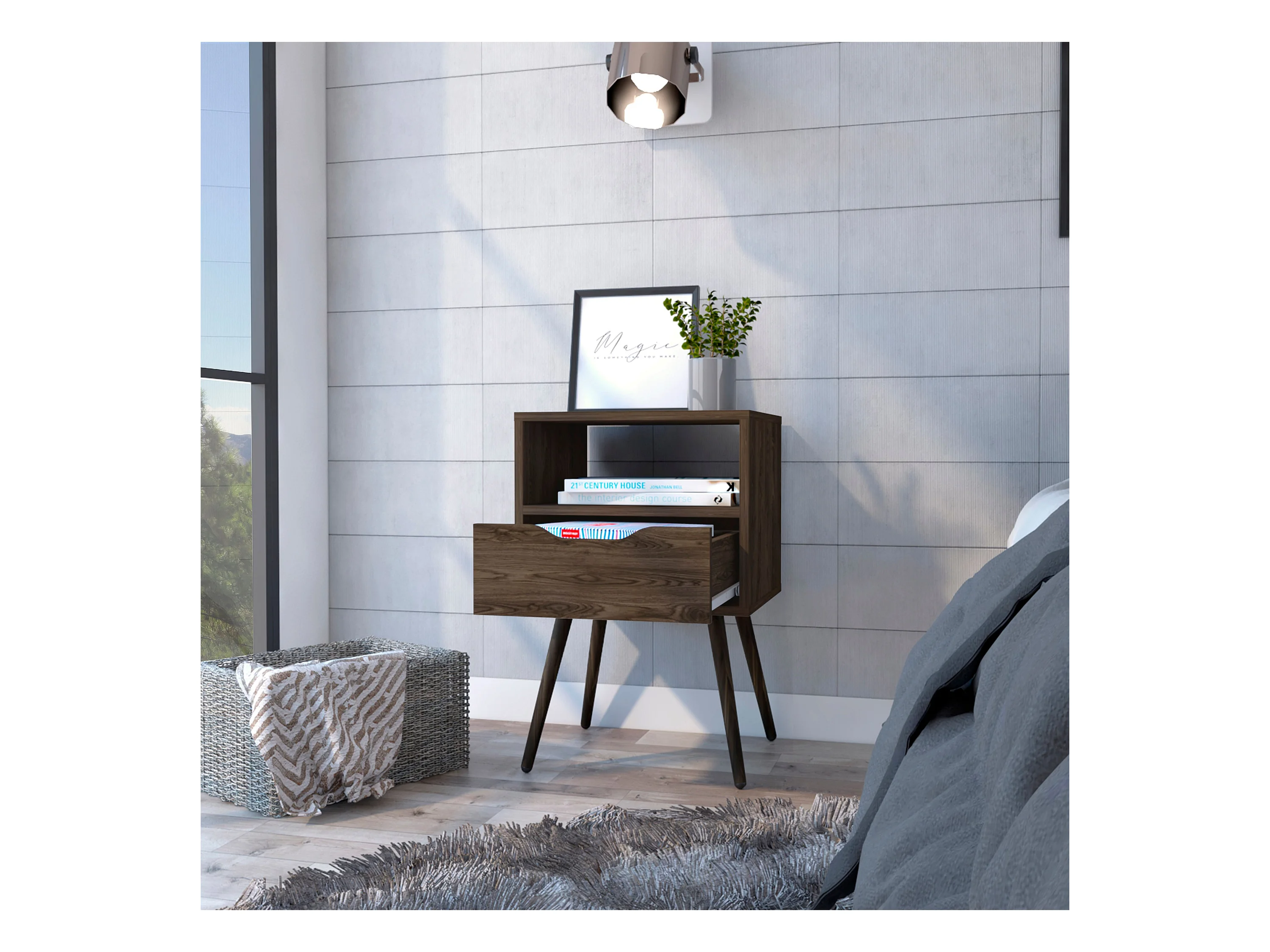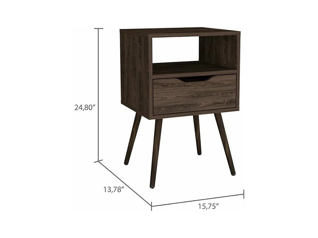 Mesita de noche Otom en melamina con 1 estante y un cajon de riel metalico , marron , 63 cm X 40 cm X 35 cm