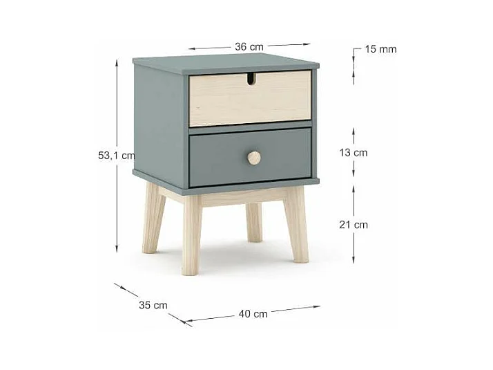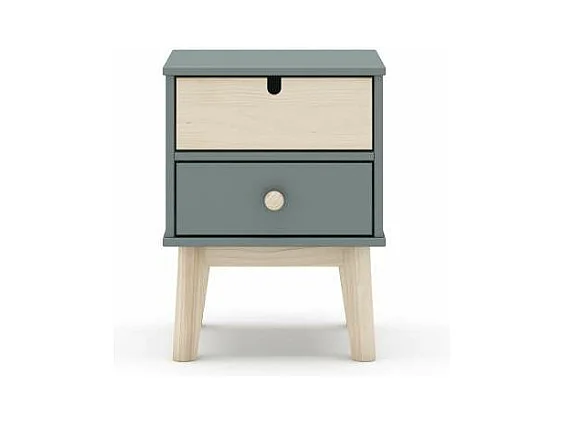 Mesita de noche para dormitorio Estela 2 cajones acabado verde kaki/cera blanca, 40cm(anch