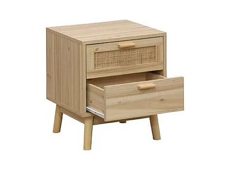 Mesita de noche para dormitorio Trend acabado pino/rattan, 48cm(alto) 40cm(ancho) 39cm(fon