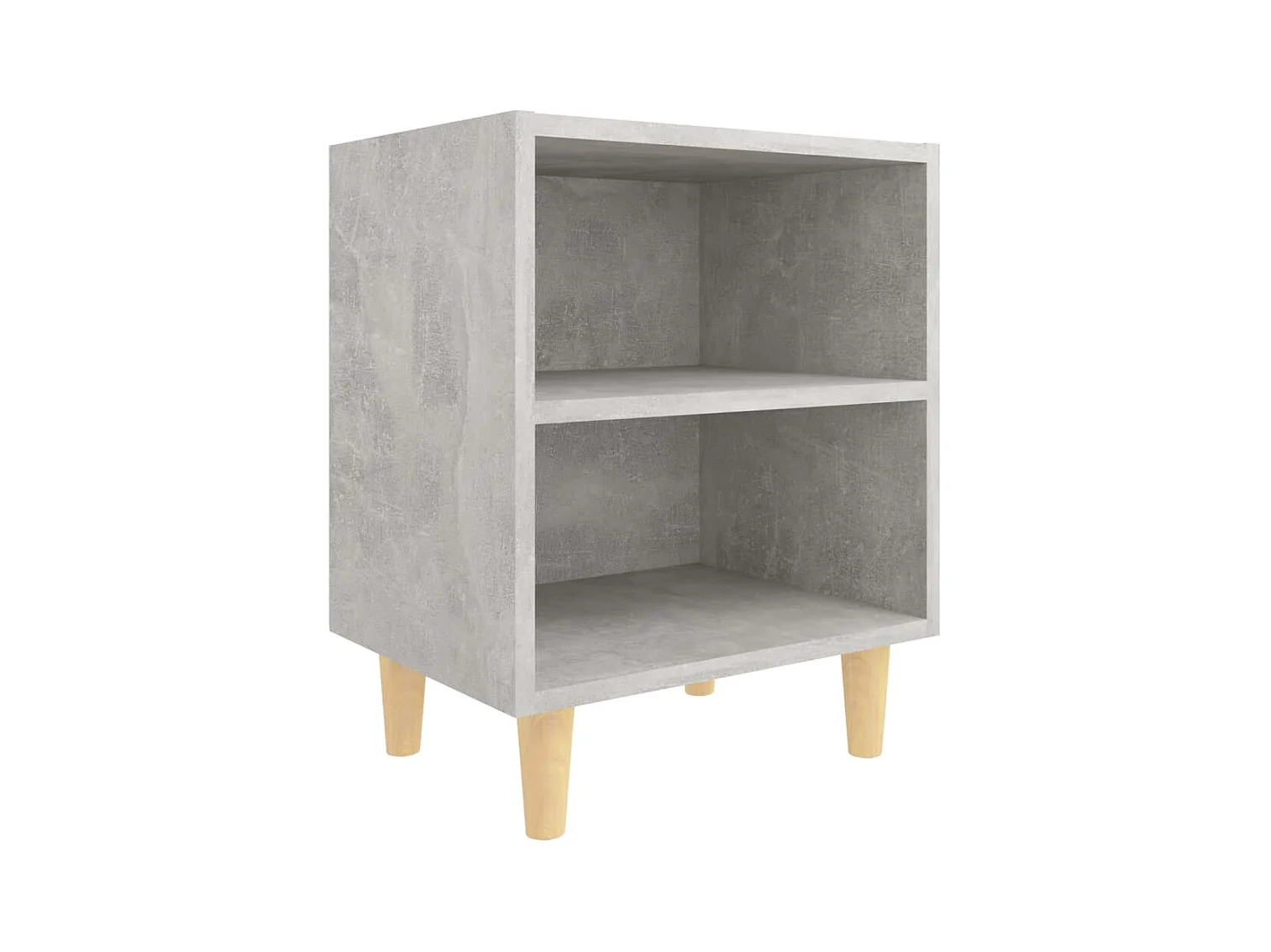 Mesita de noche patas madera maciza gris hormigón 40x30x50 cm ES29571
