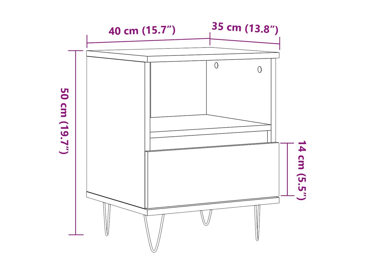 Mesita de noche de roble ahumado 40x35x50 cm madera de ingeniería