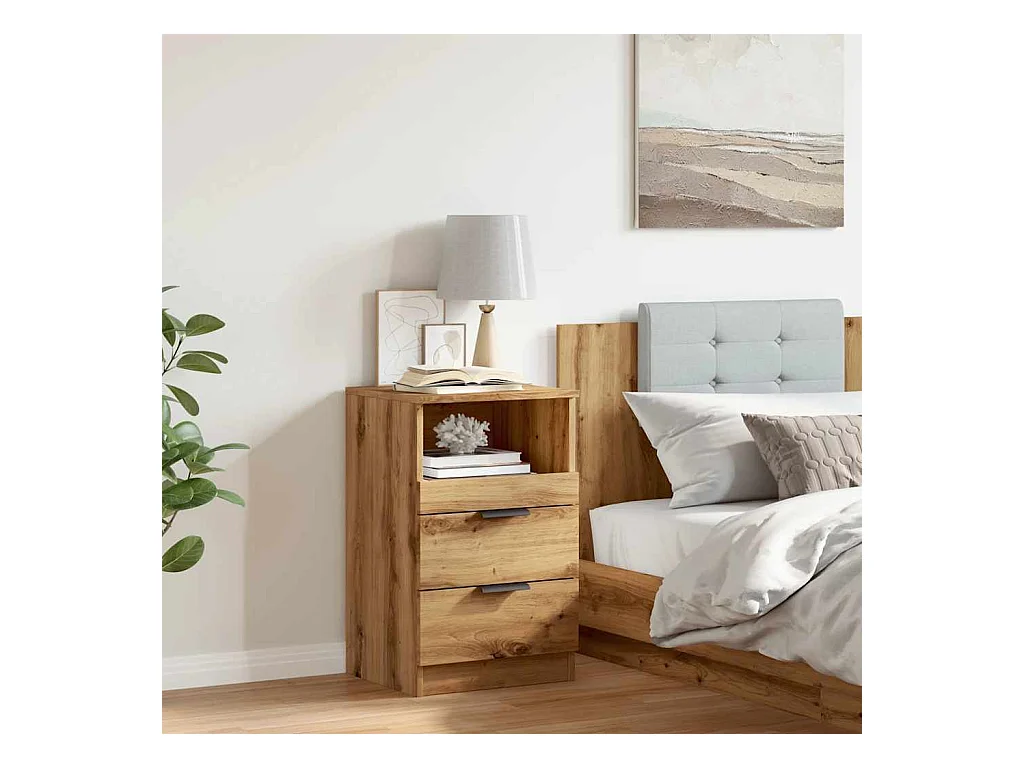 Mesita de noche roble craft 40x36x65 cm madera de ingeniería