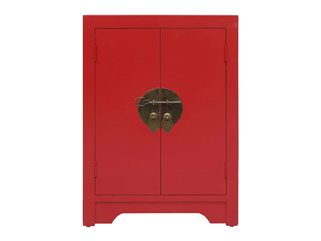 Mesita de madera lacada de 1 cajón y 2 puertas 48x32x70h cm - Rojo