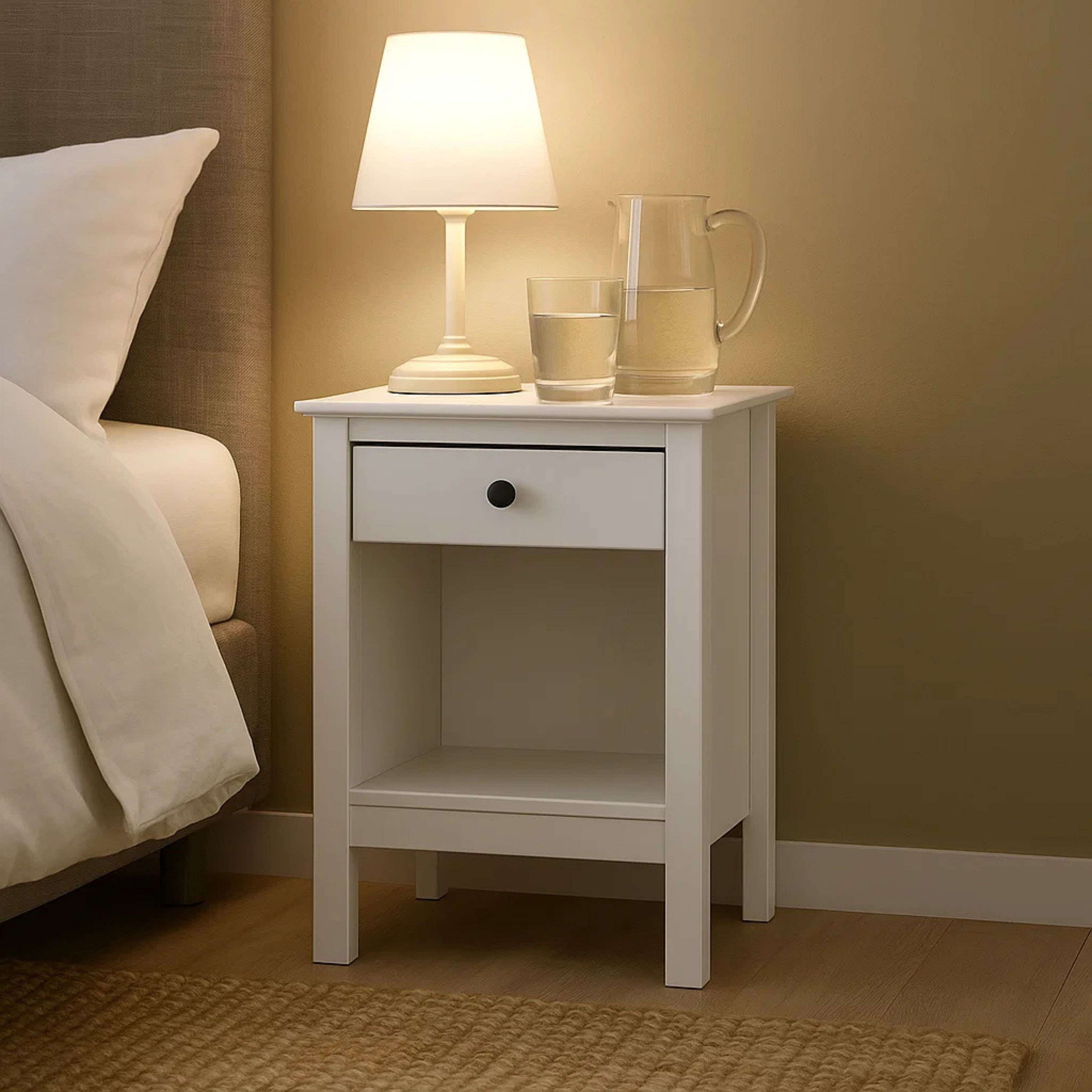 Mesita de Noche Samy 1 Cajón Blanco 48x60 cm