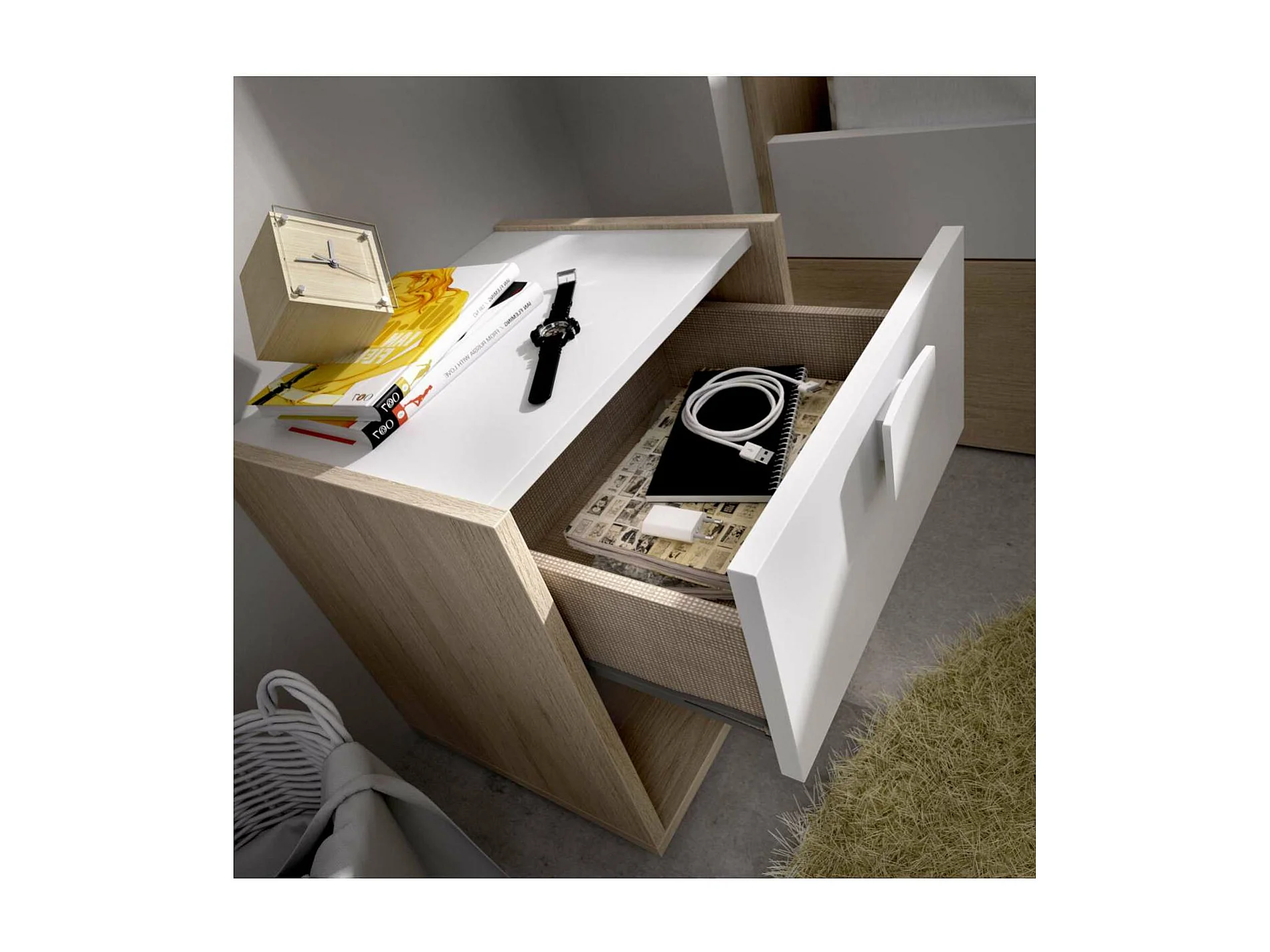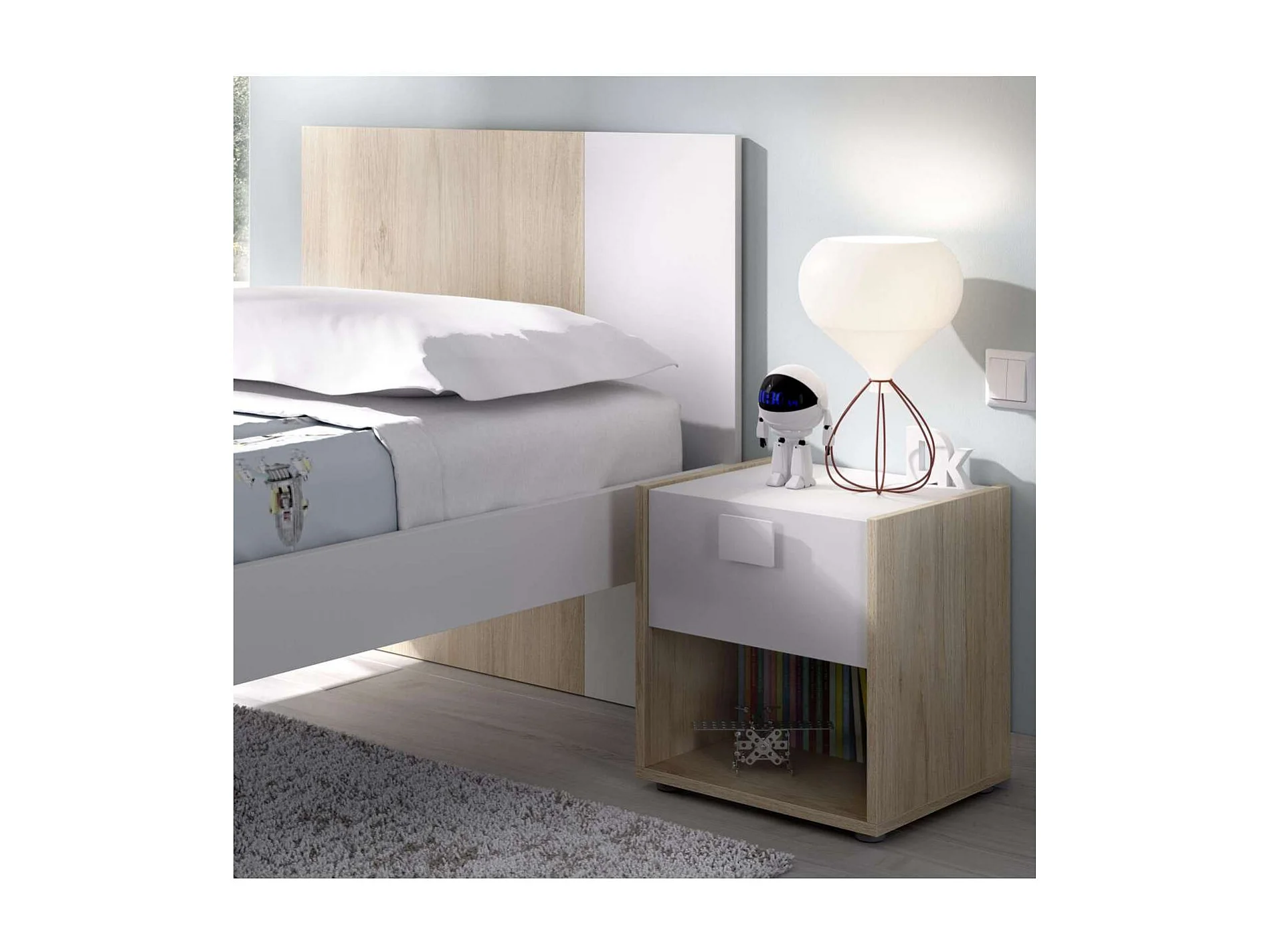 Mesita de noche Santisteban con 1 cajon en acabado natural/blanco 40 cm(alto)40 cm(ancho)3