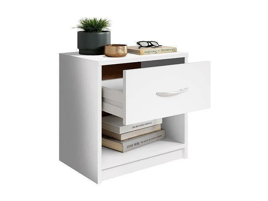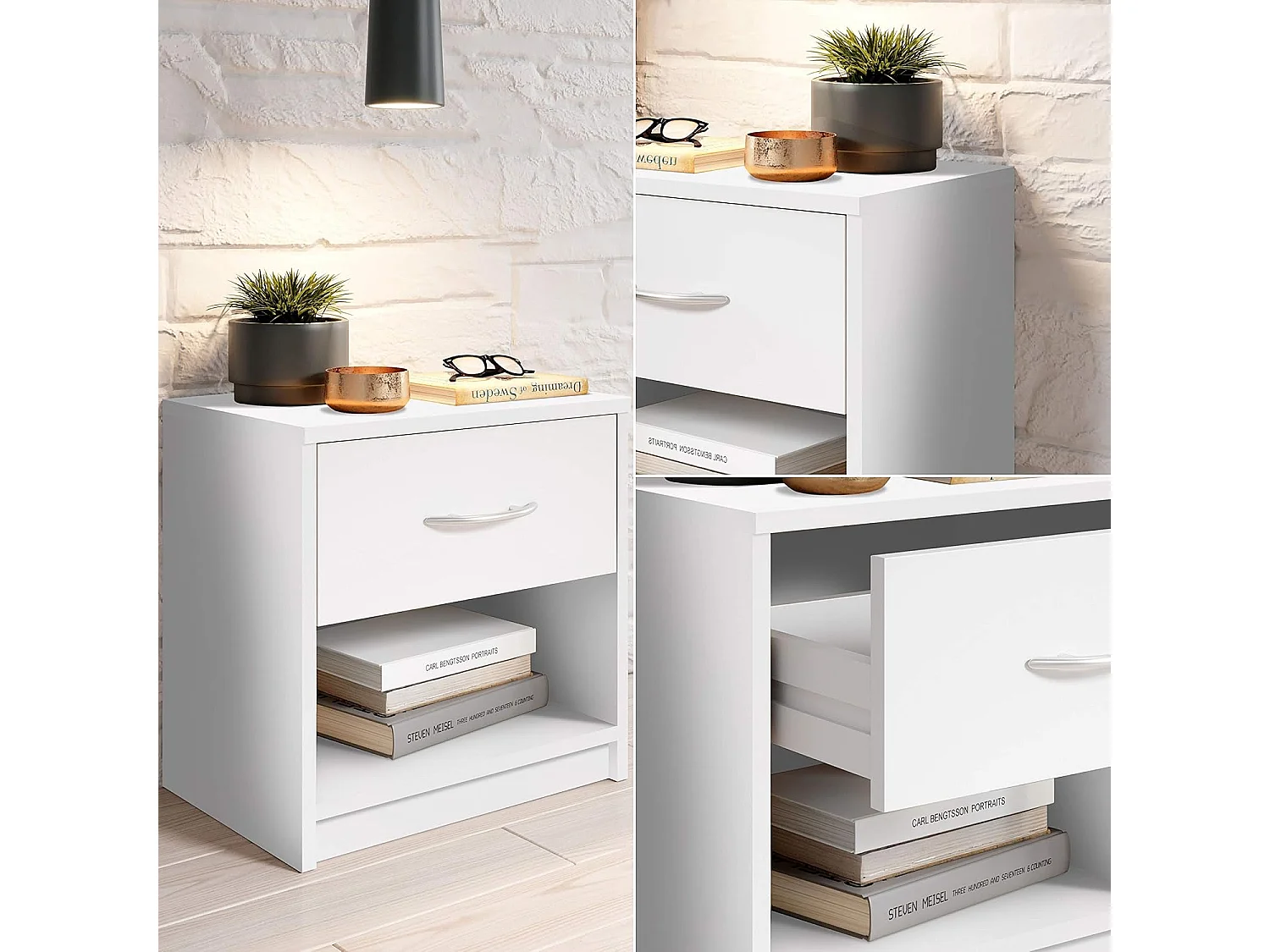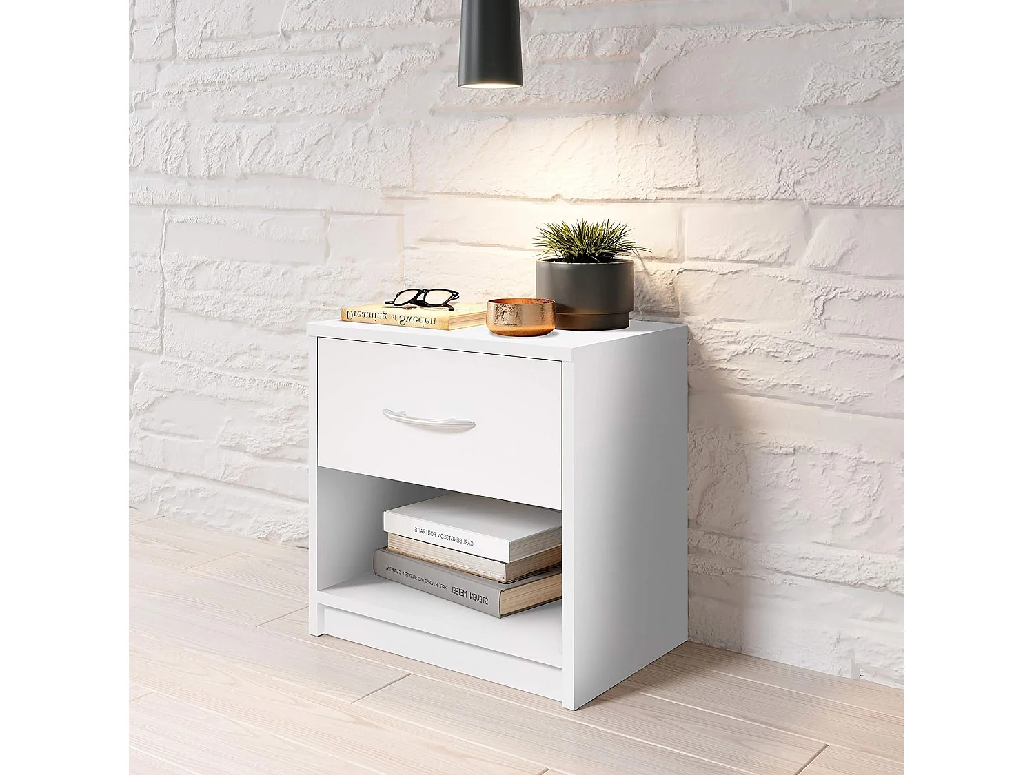 Mesita de noche sencilla con un cajón adecuada para cualquier cama y dormitorio, Color Blanco, 38,5 x 28 x 39,5 cm (ancho x fondo x alto)