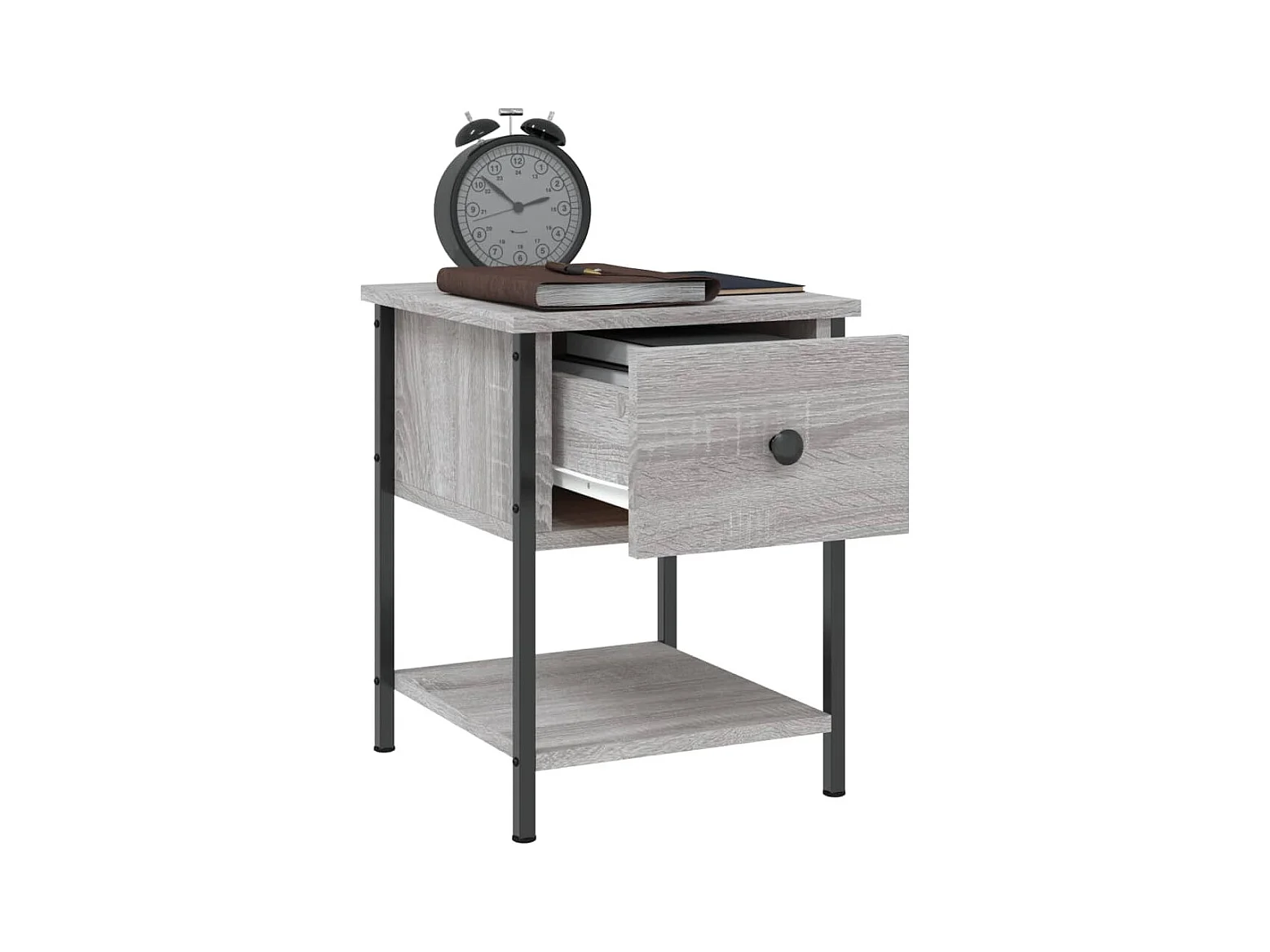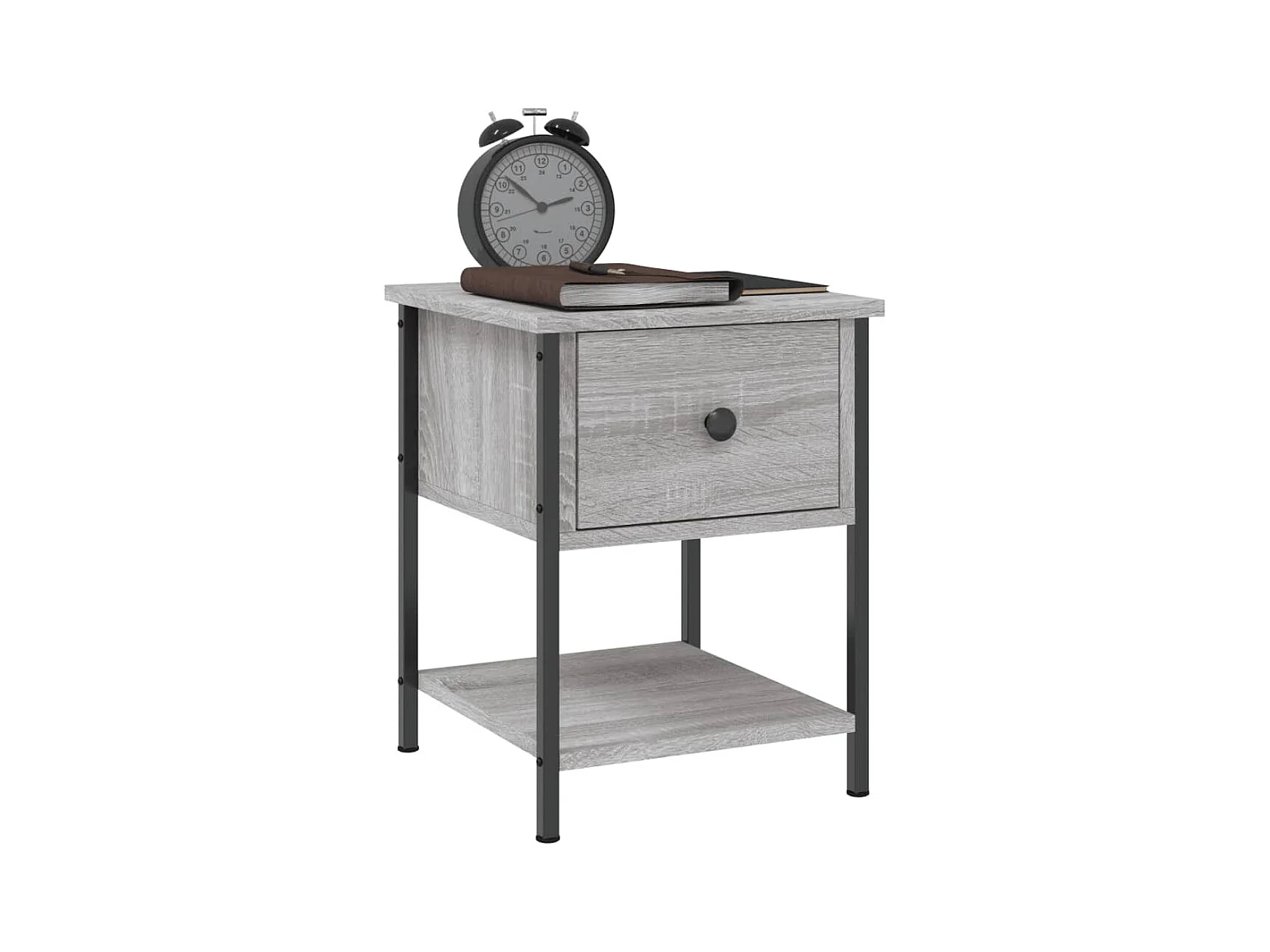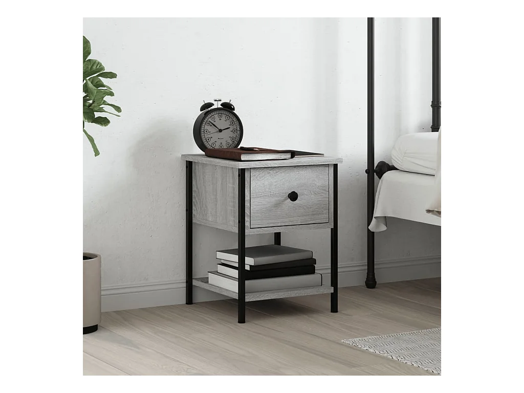 Mesilla de noche con madera de ingeniería gris de 44 x 34,5 x 45 cm