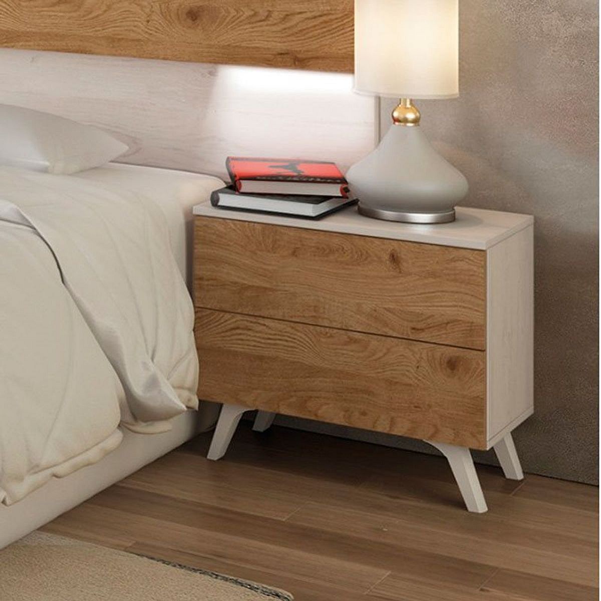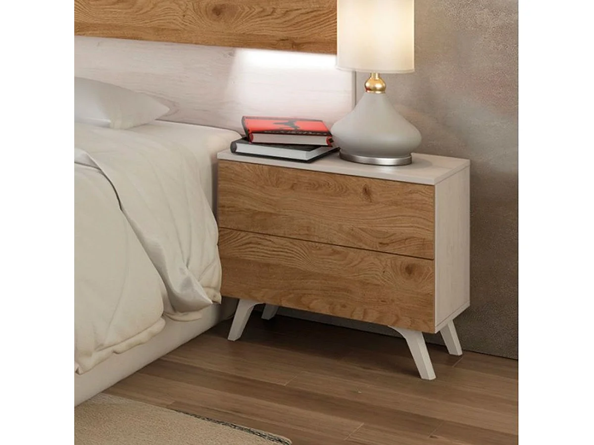 Mesita de noche Soto 2 cajones pino Andersen/roble 50x52x34,8 cm