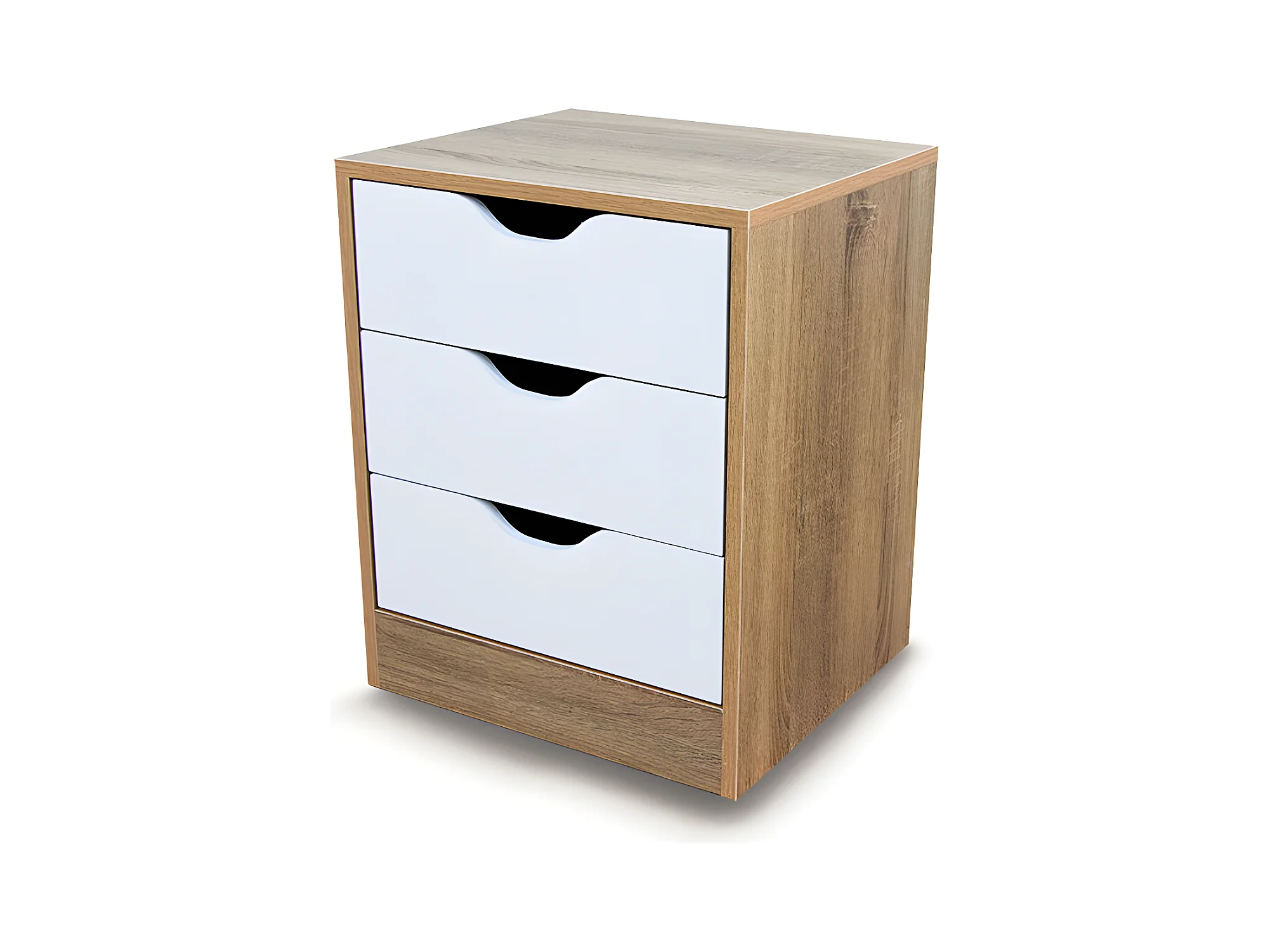 Mesita de Noche Trillo 3 Cajones Blanco y Cambria 50x40 cm