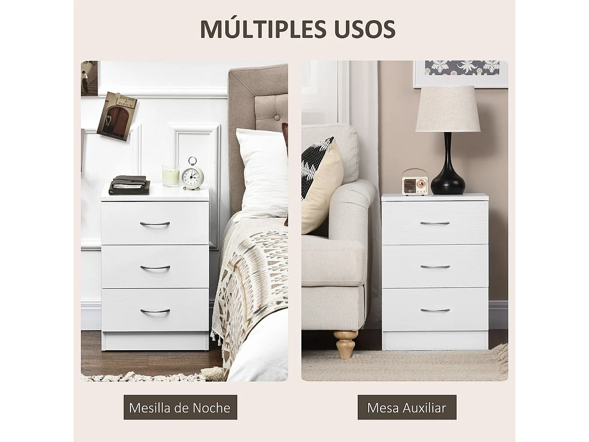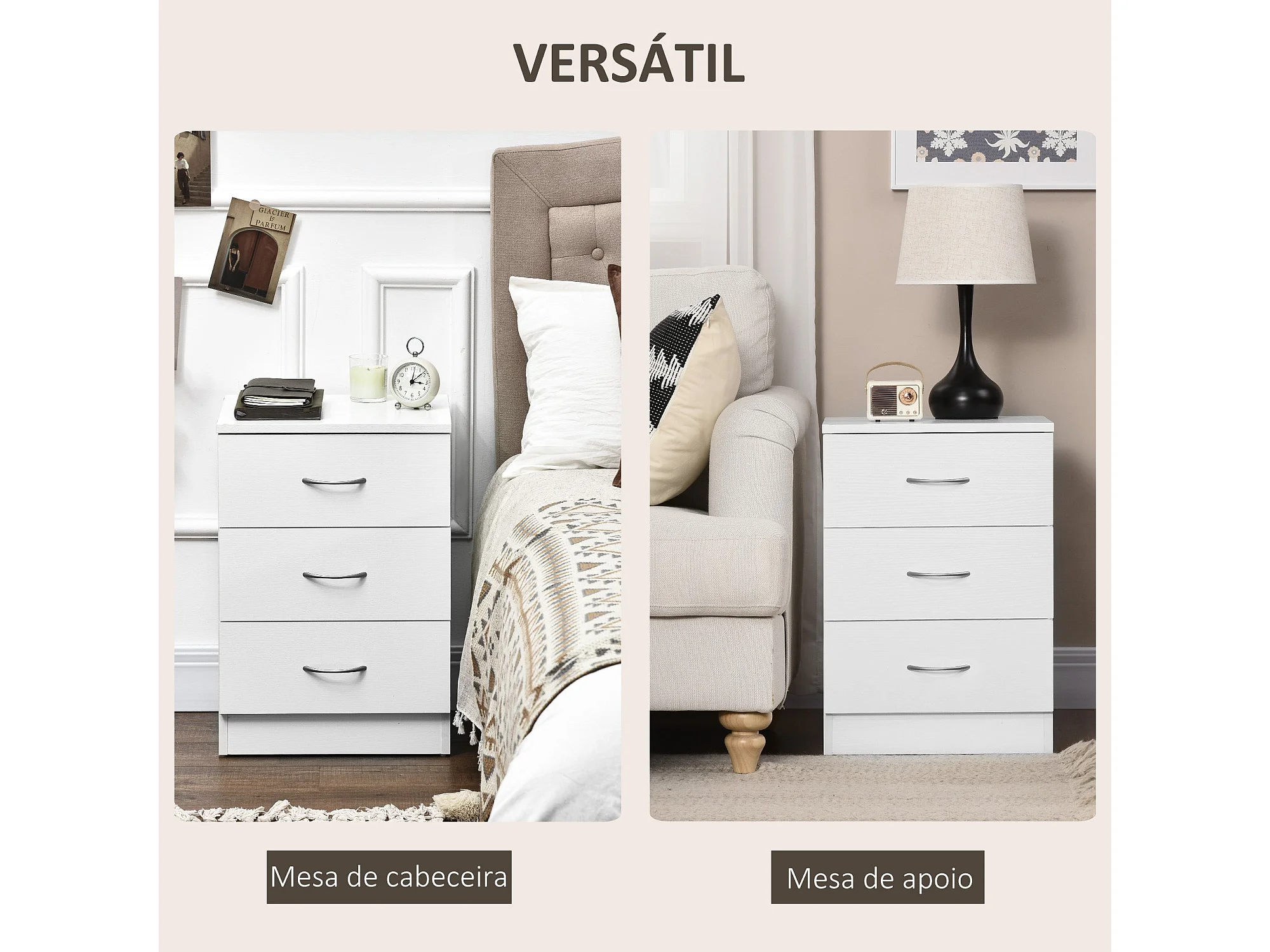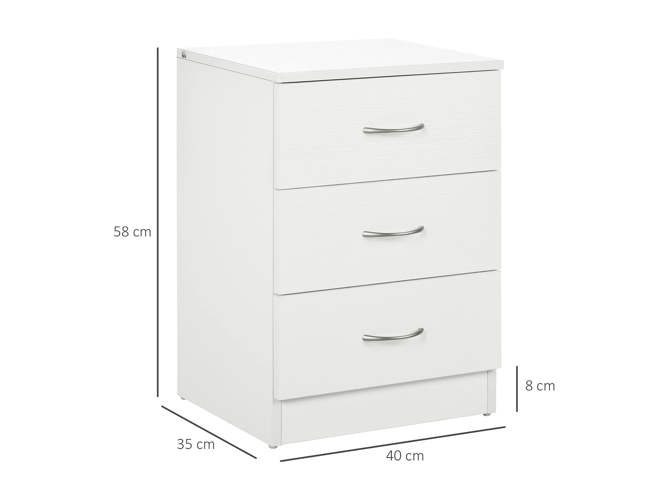 Mesita de noche Varego Homcom 3 cajones blanco 58x40x35 cm