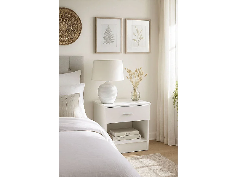 Mesita de noche o auxiliar madera maciza en tono blanco de 45x39cm - FRIDA - DECOWOOD