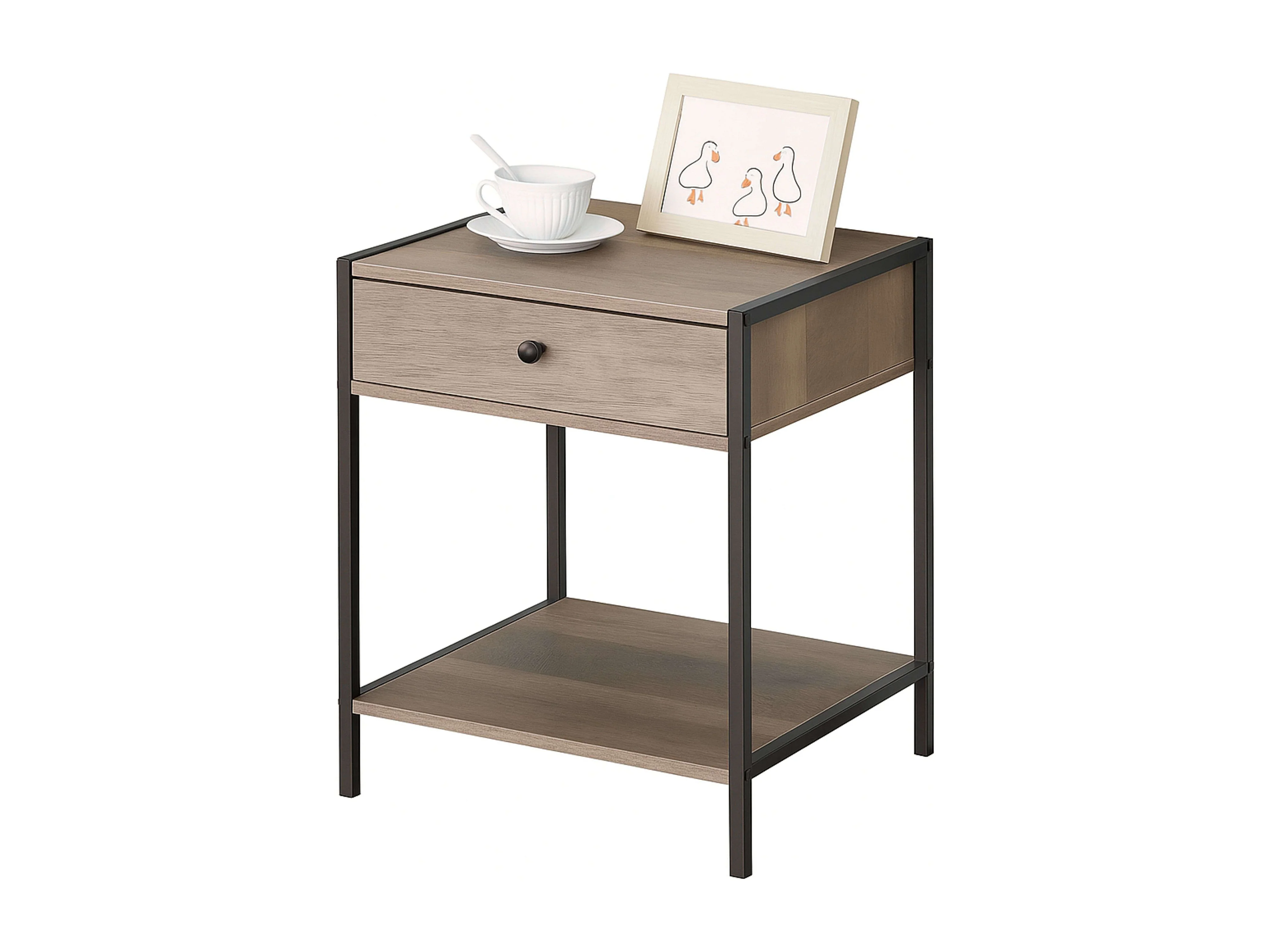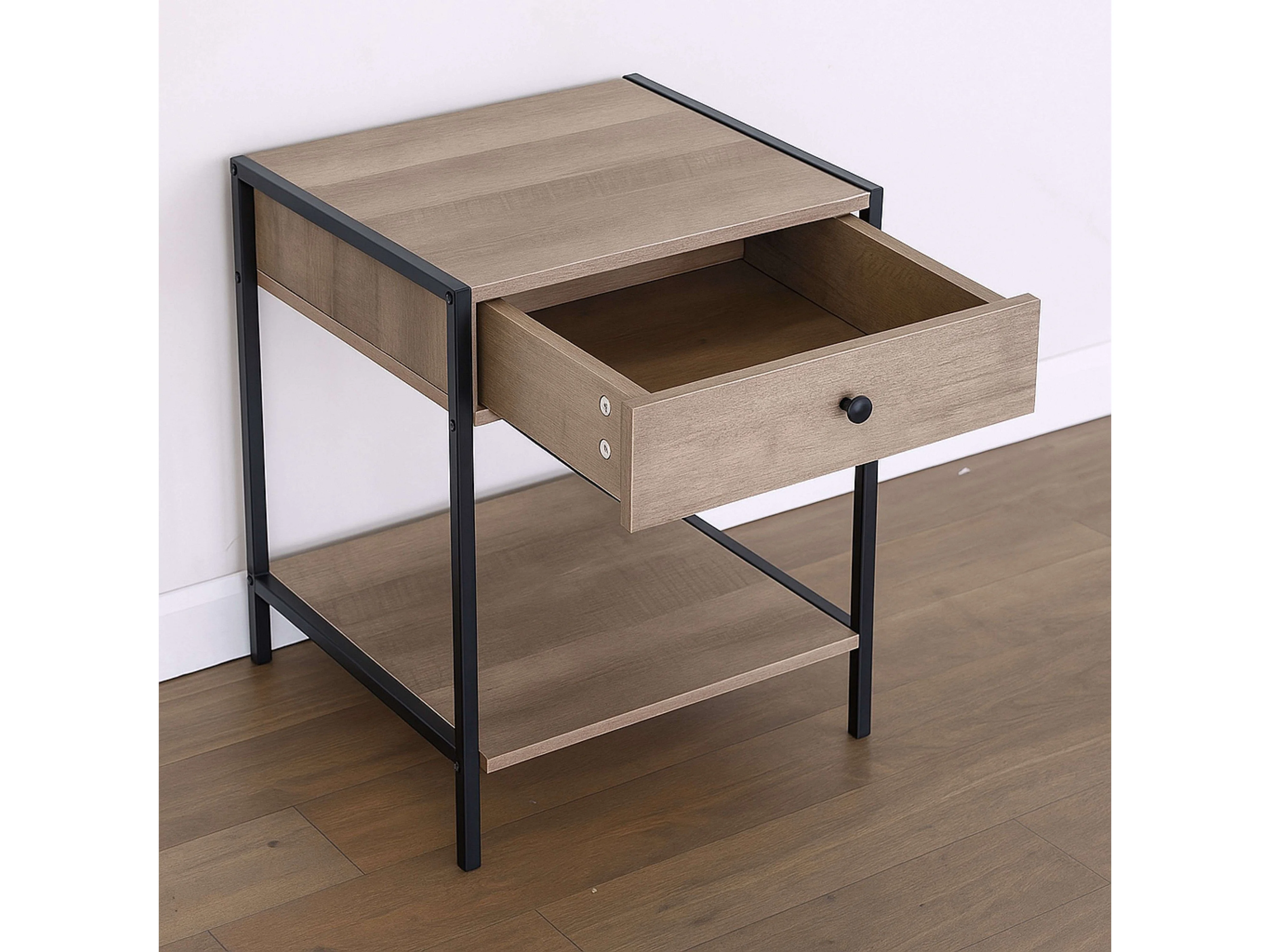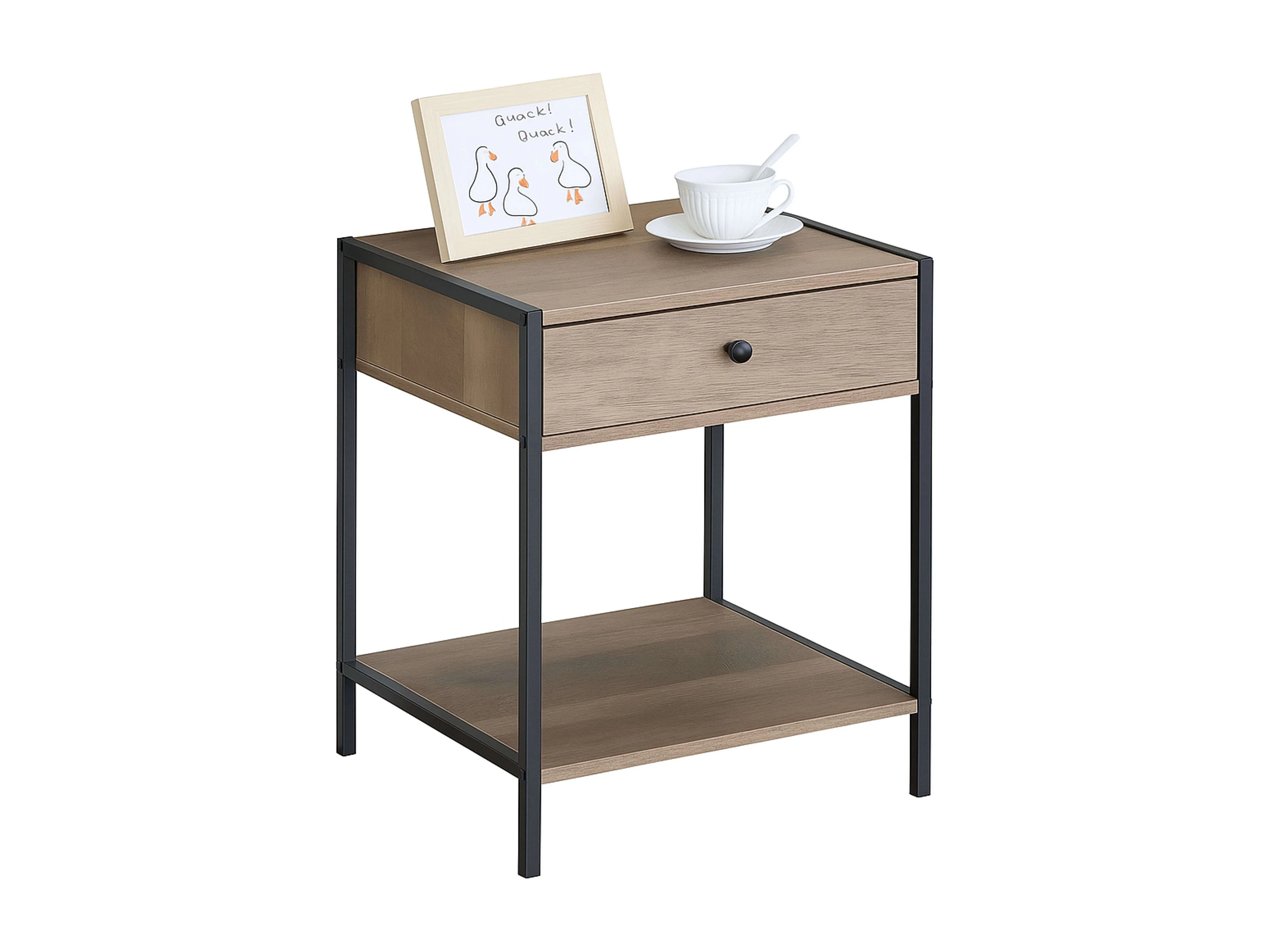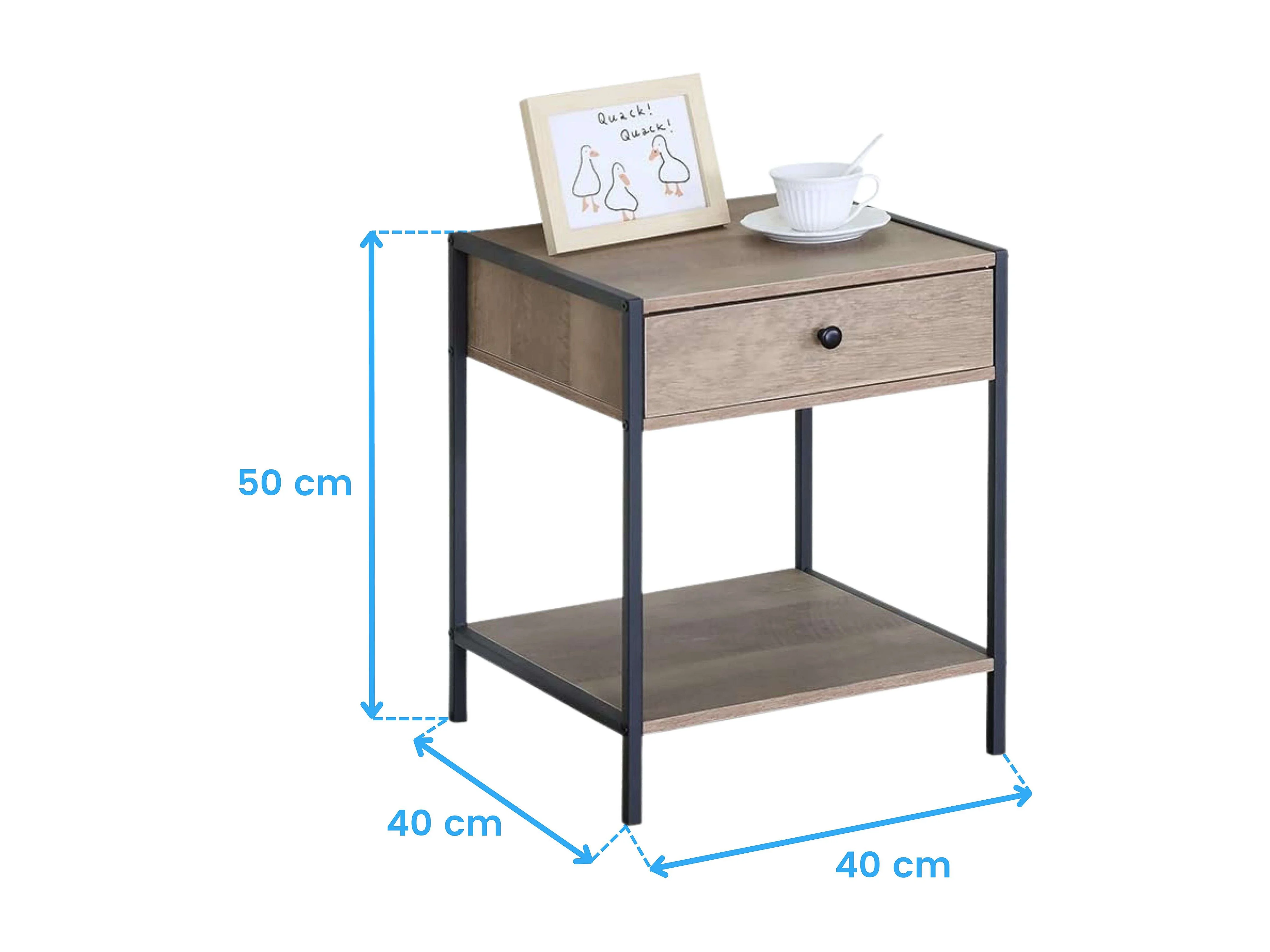 Mesita noche c/cajón y estante roble cambrian y negro 40x50 cm