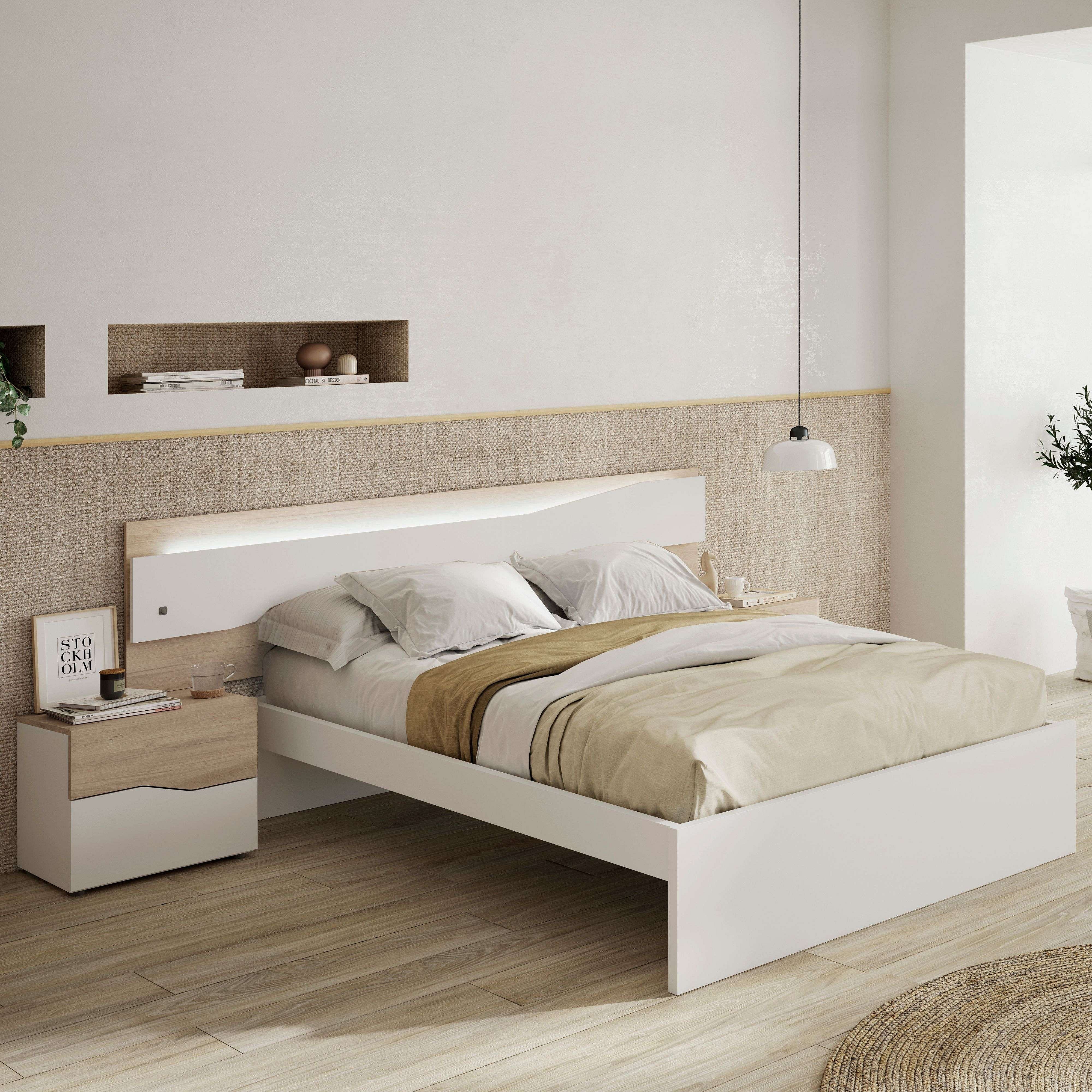 Mesita Noche Moderna Yao Blanco y Haya Dormitorio 43x50x35 cm