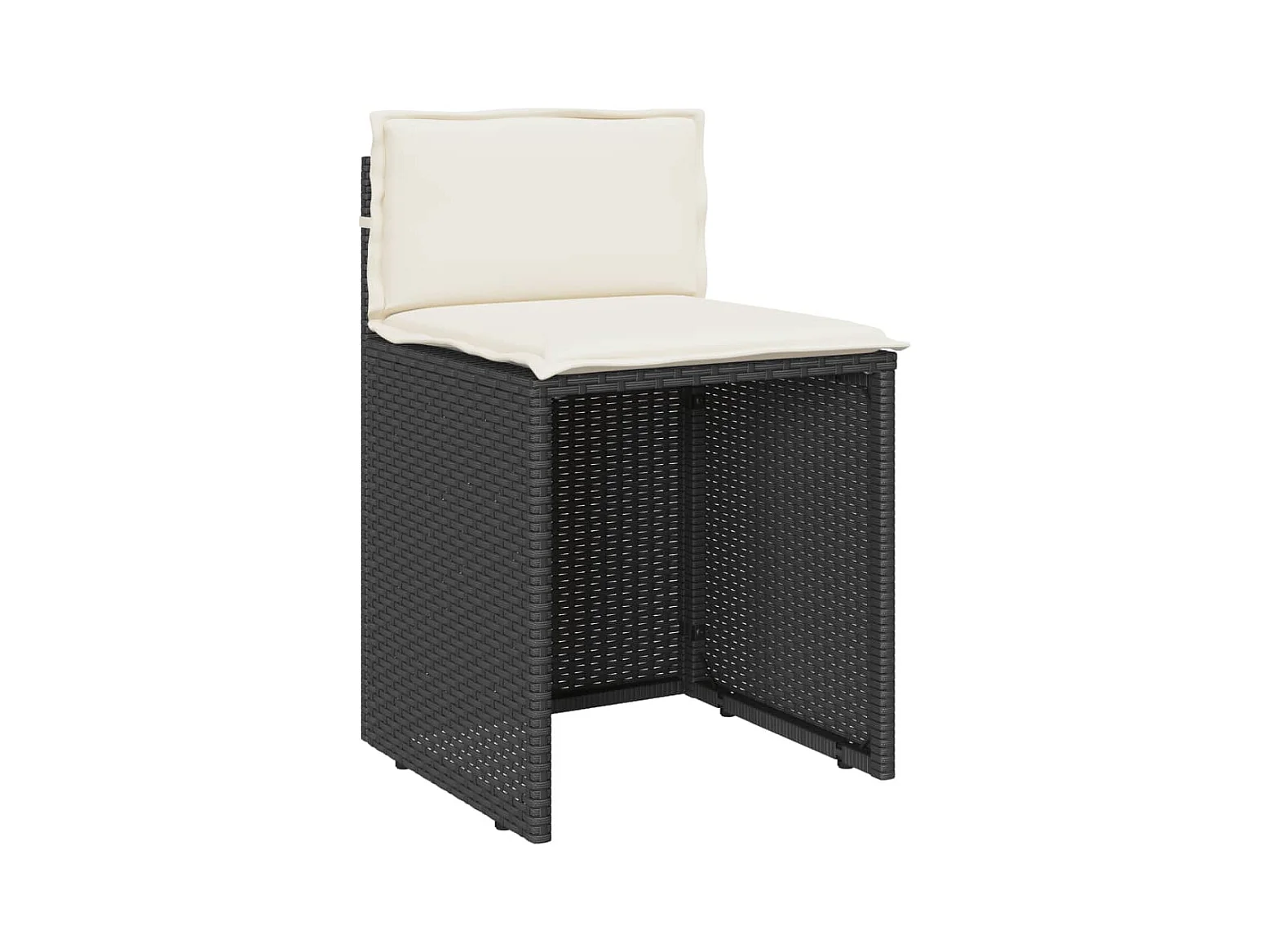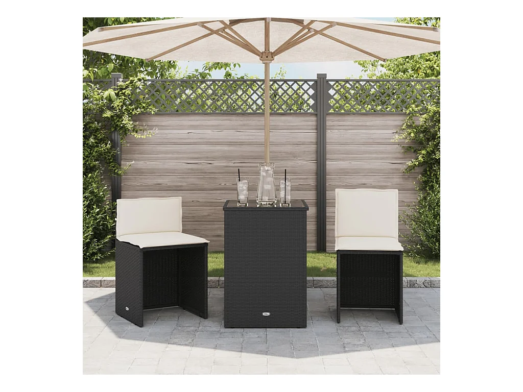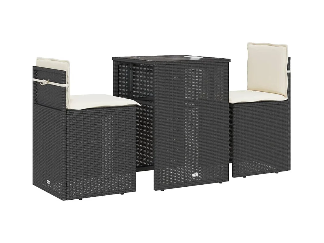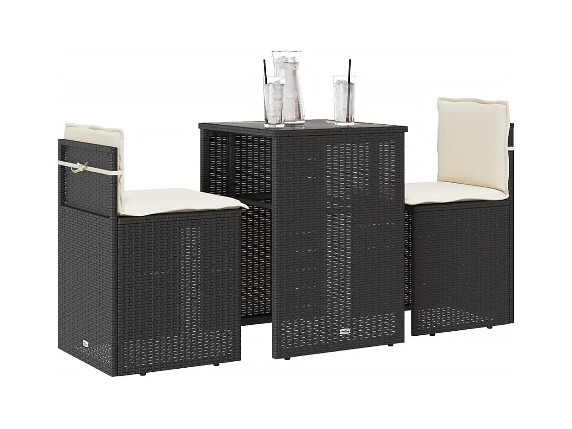 Mesita y sillas con cojines 3 pzas ratán sintético vidrio negro ES697487