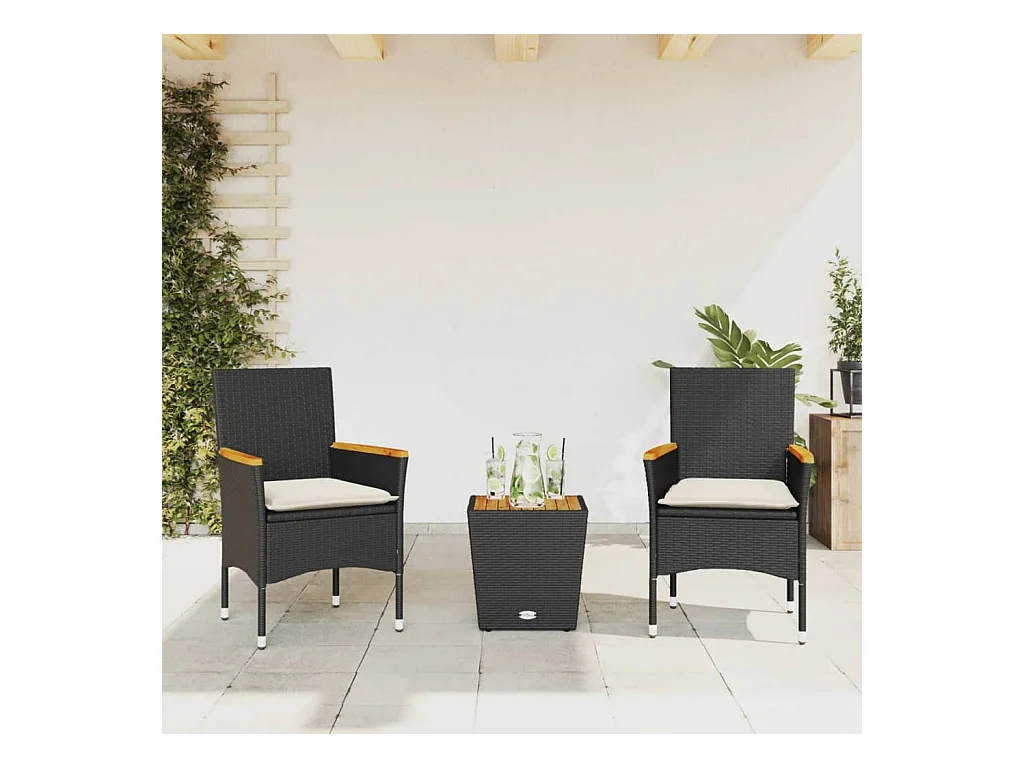 Set comedor de jardín 3 pzas con cojines ratán sintético negro ES778145