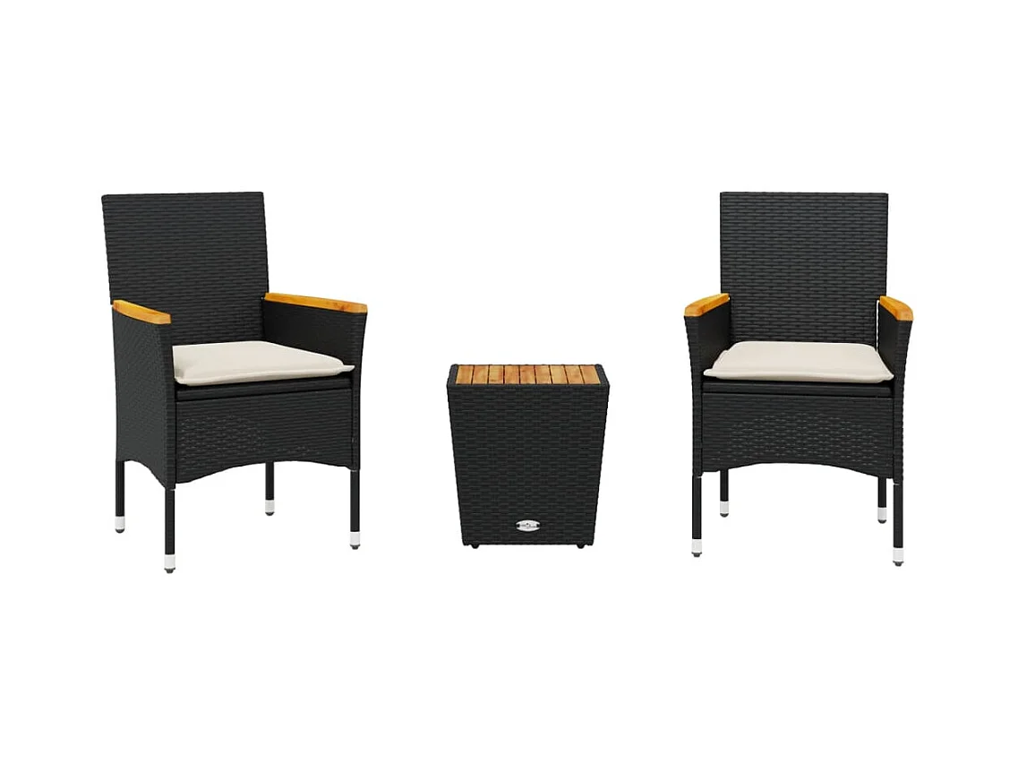 Mesita y sillas con cojines 3 piezas ratán sintético negro ES306996