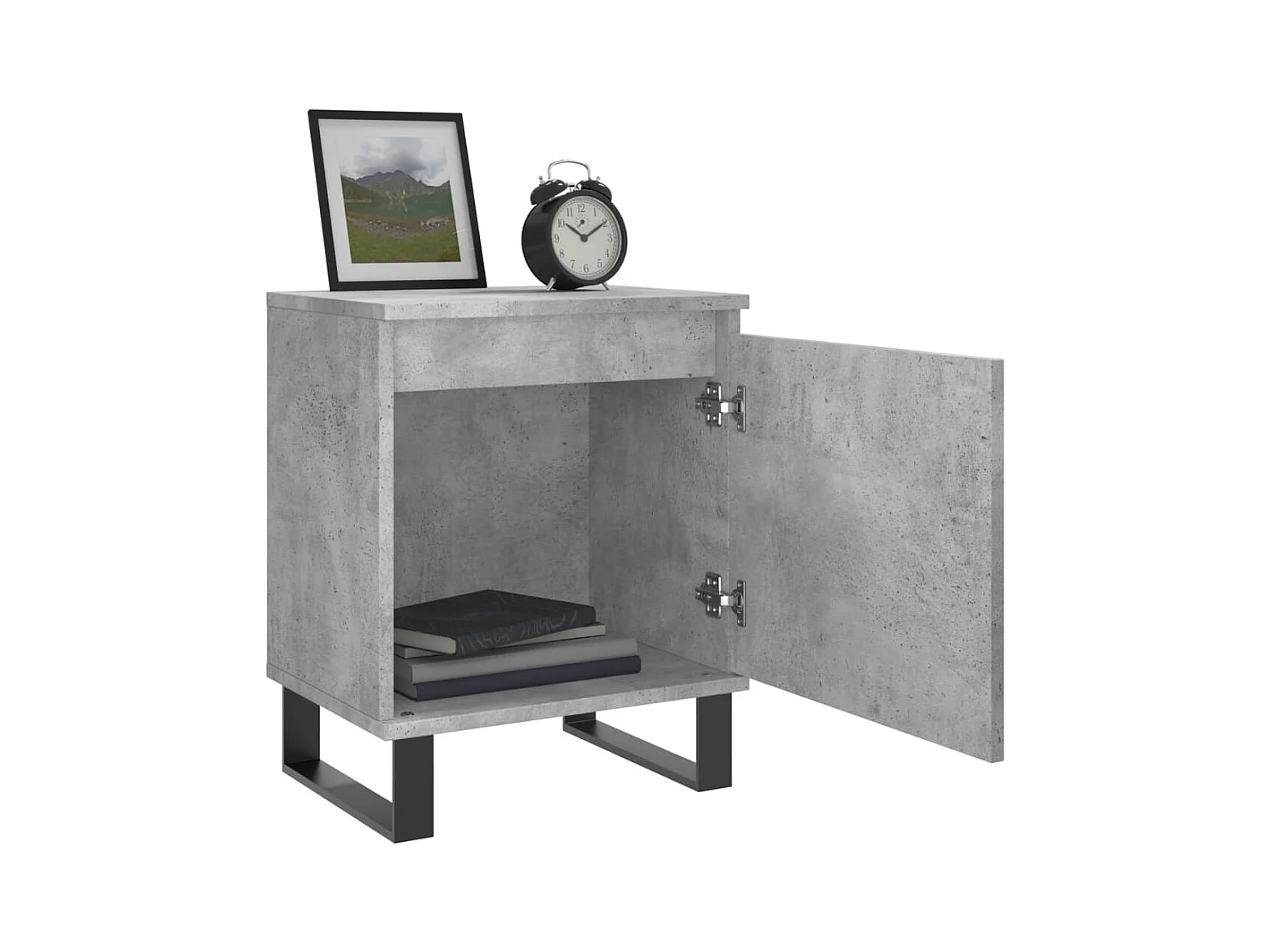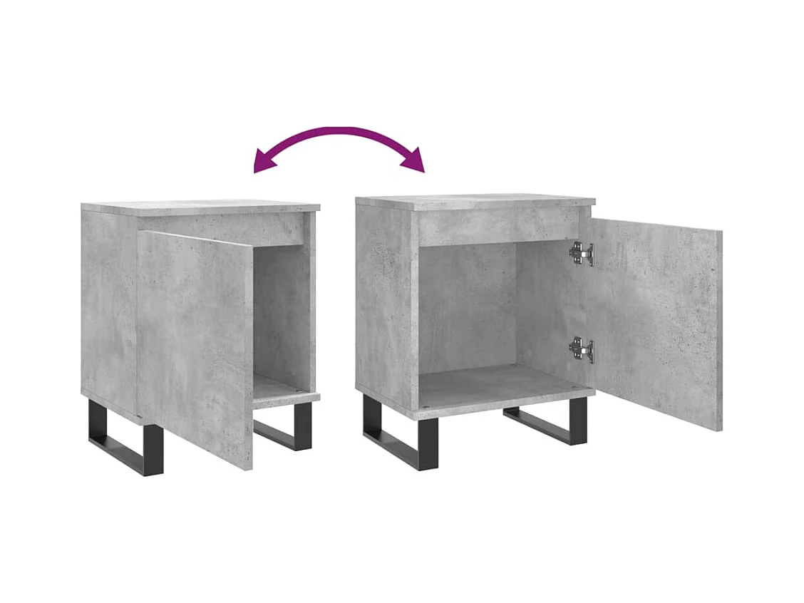 Mesita de noche con patas de metal gris hormigón 40x30x50 cm