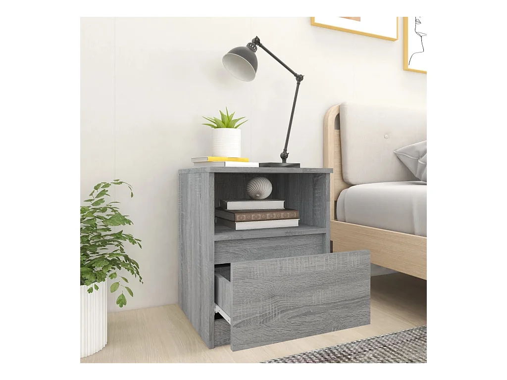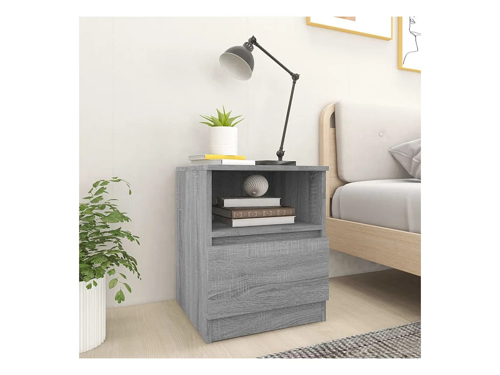Mesita de noche de madera de ingeniería de color gris hormigón