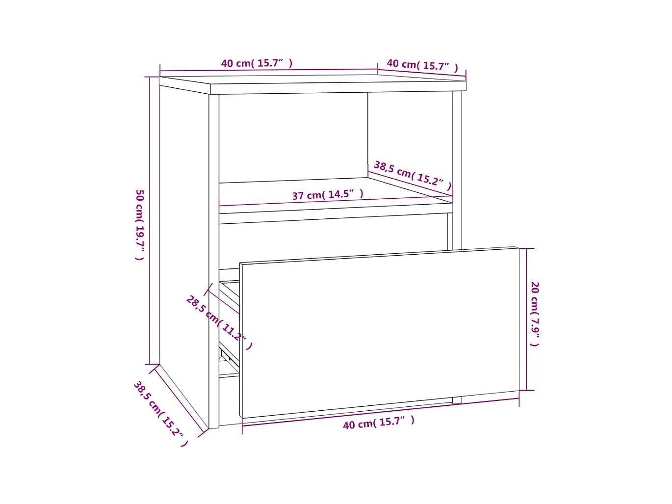 Mesita de noche de madera de ingeniería gris hormigón 40x40x50 cm