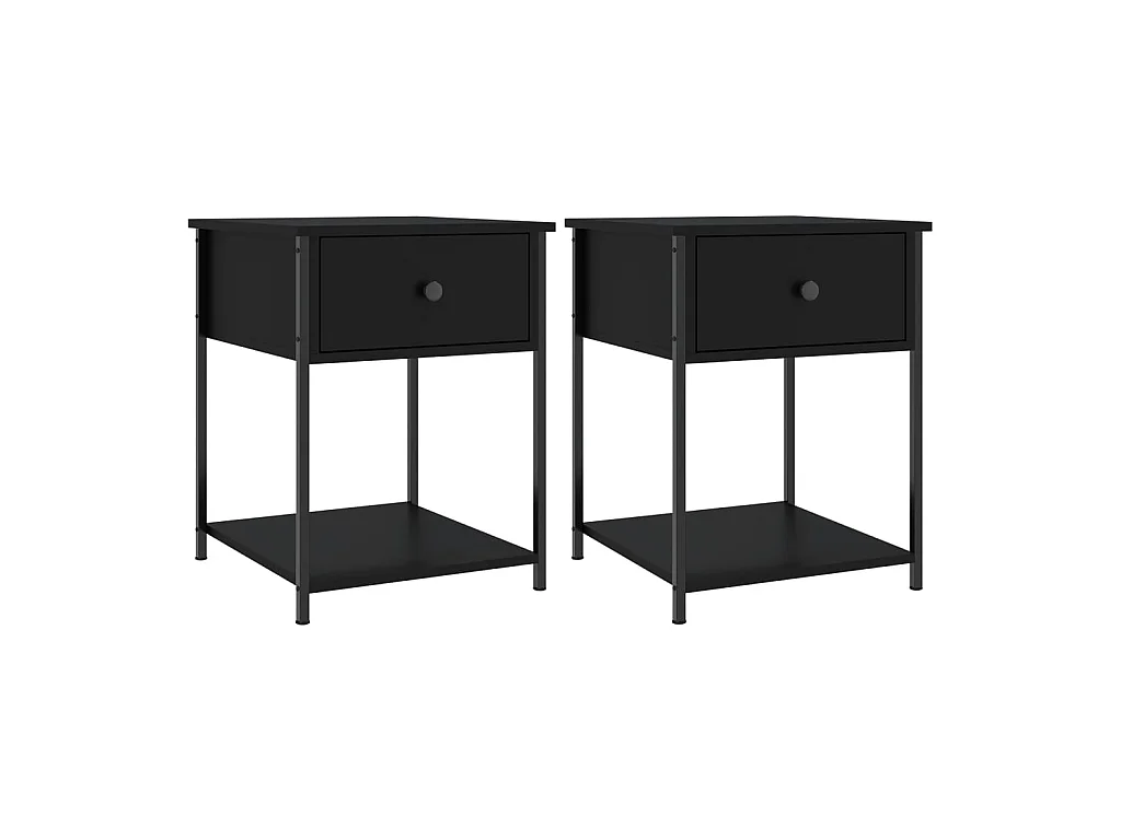 Lote de 2 Mesitas de noche madera de ingeniería negro 44x45x60 cm ES58291