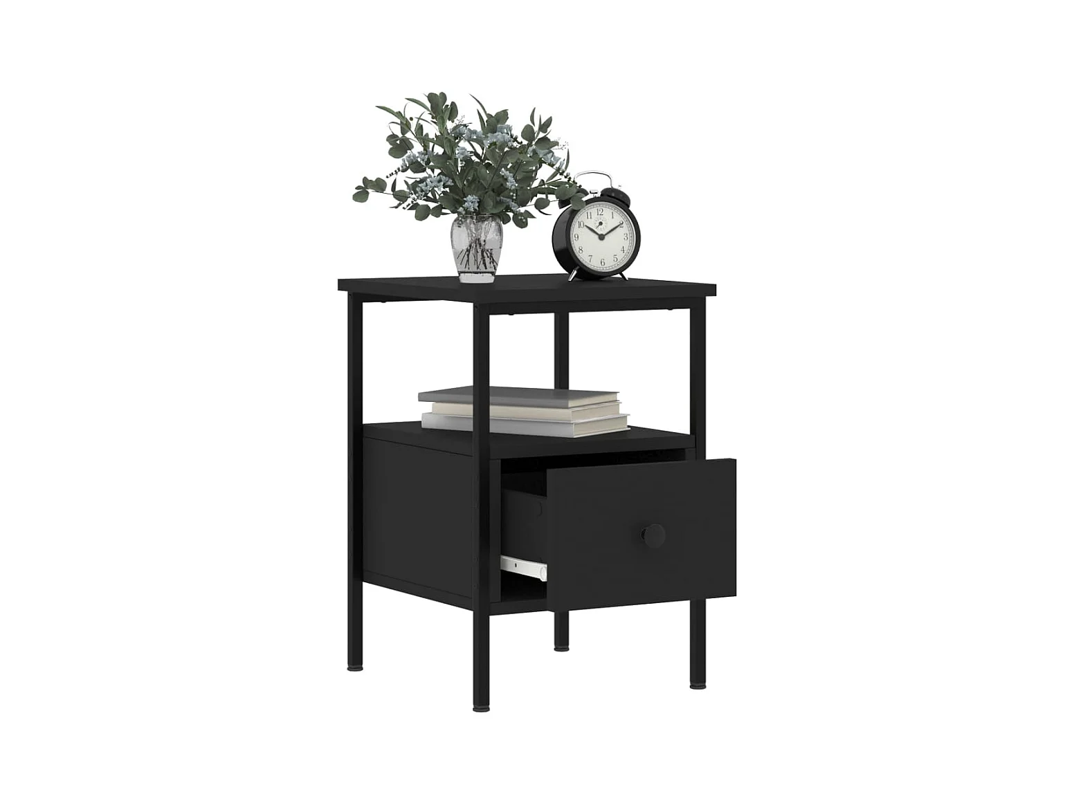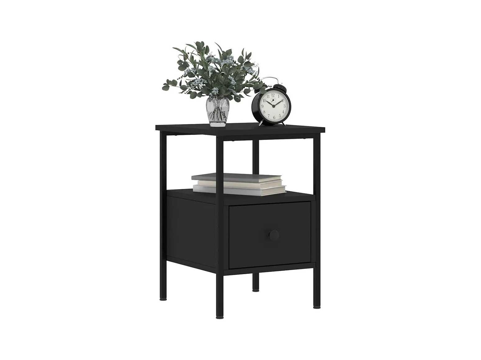 Mesita de noche con 2 cajones negra 36x36x68 cm