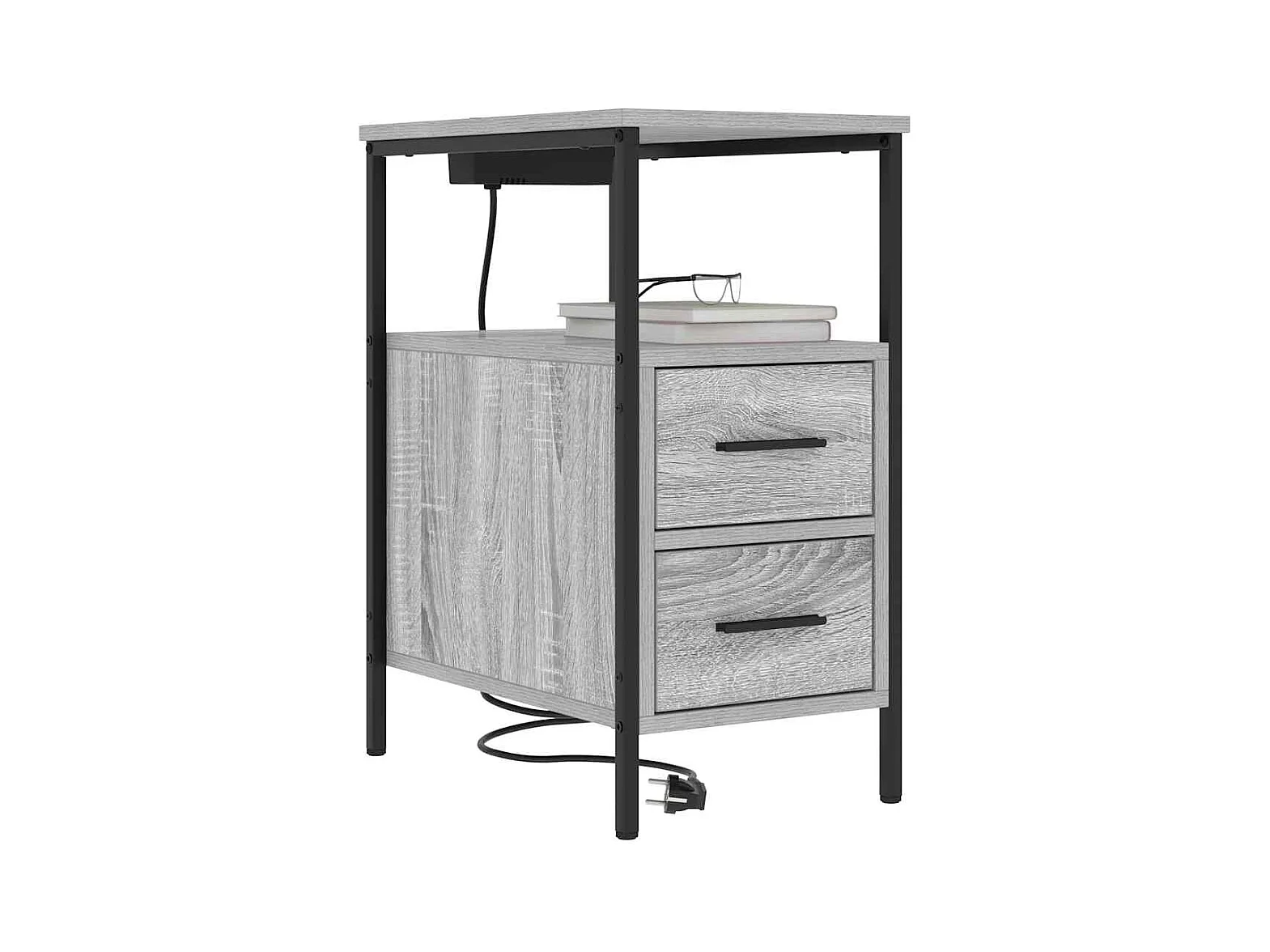 Mesita de noche de madera de ingeniería gris hormigón 46,5x29x61 cm