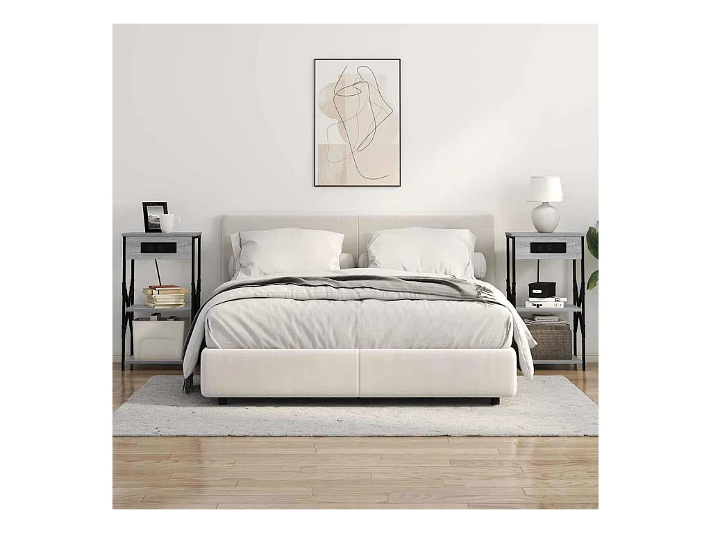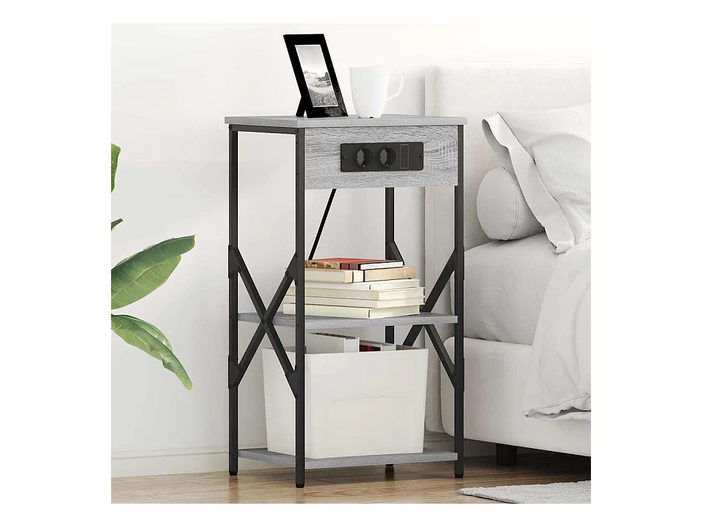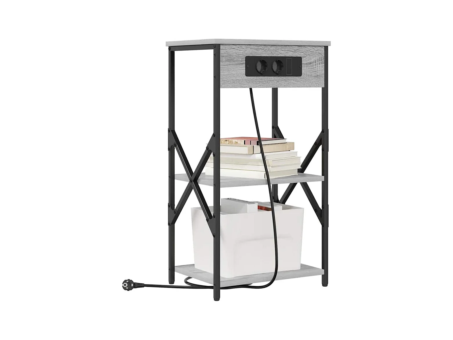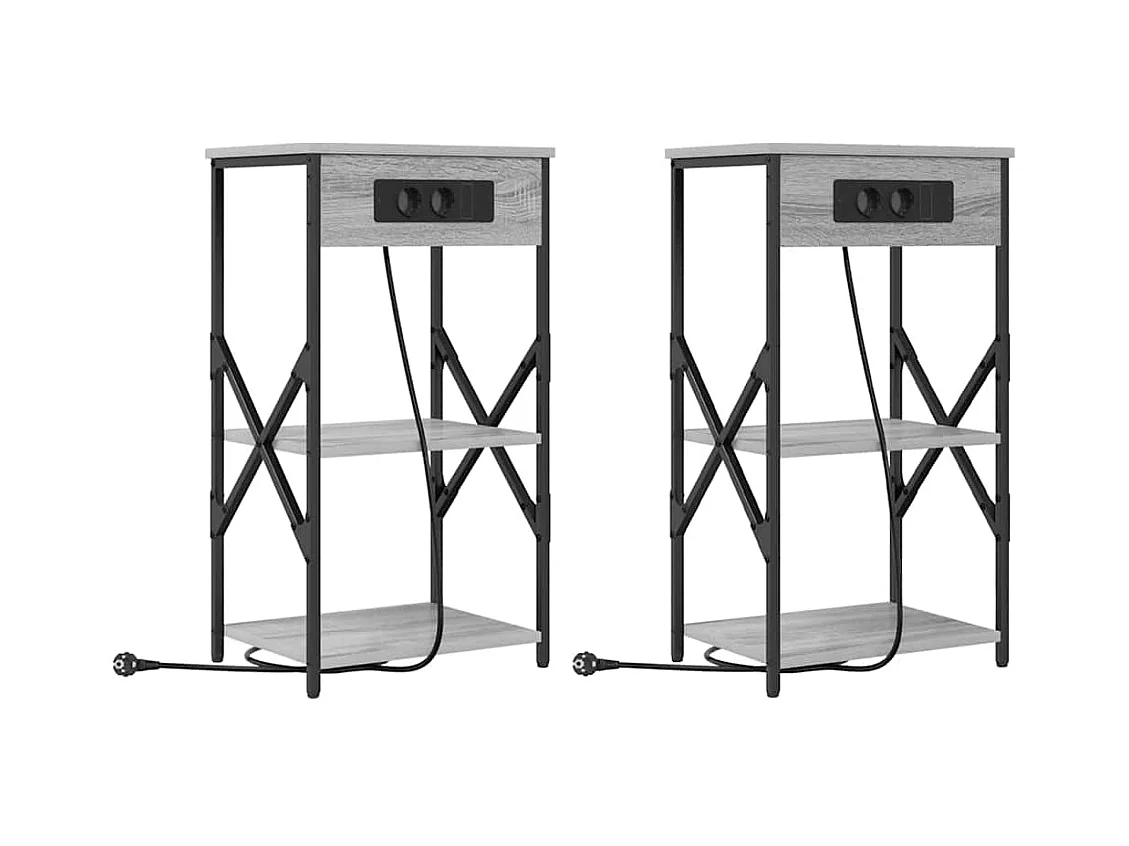 Mesita de noche de dos piezas en gris Sonoma con estación de carga