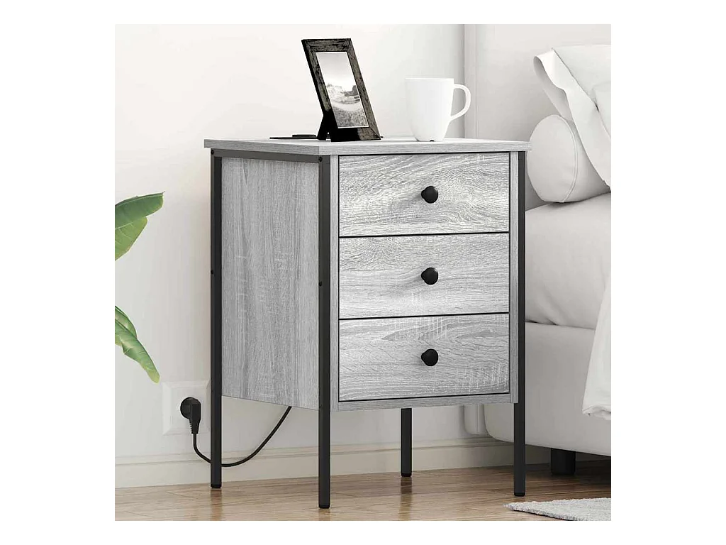 Mesita de noche de dos piezas en gris Sonoma con estación de carga