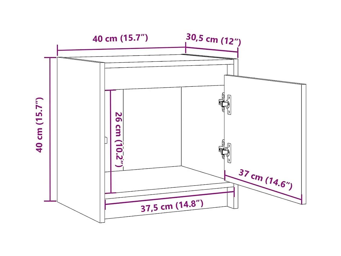 Mesita de noche Blanca 40x30x40 cm Madera maciza de pino