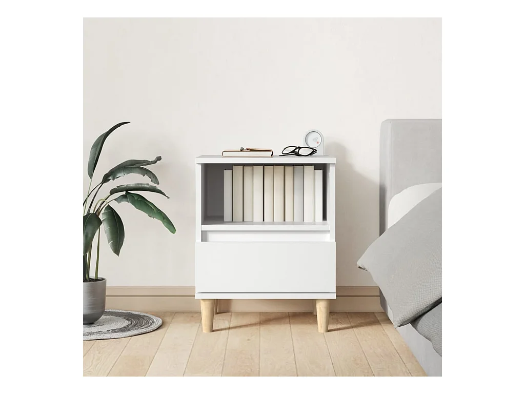 Mesita de noche Blanca 40x35x50 cm Madera maciza de pino