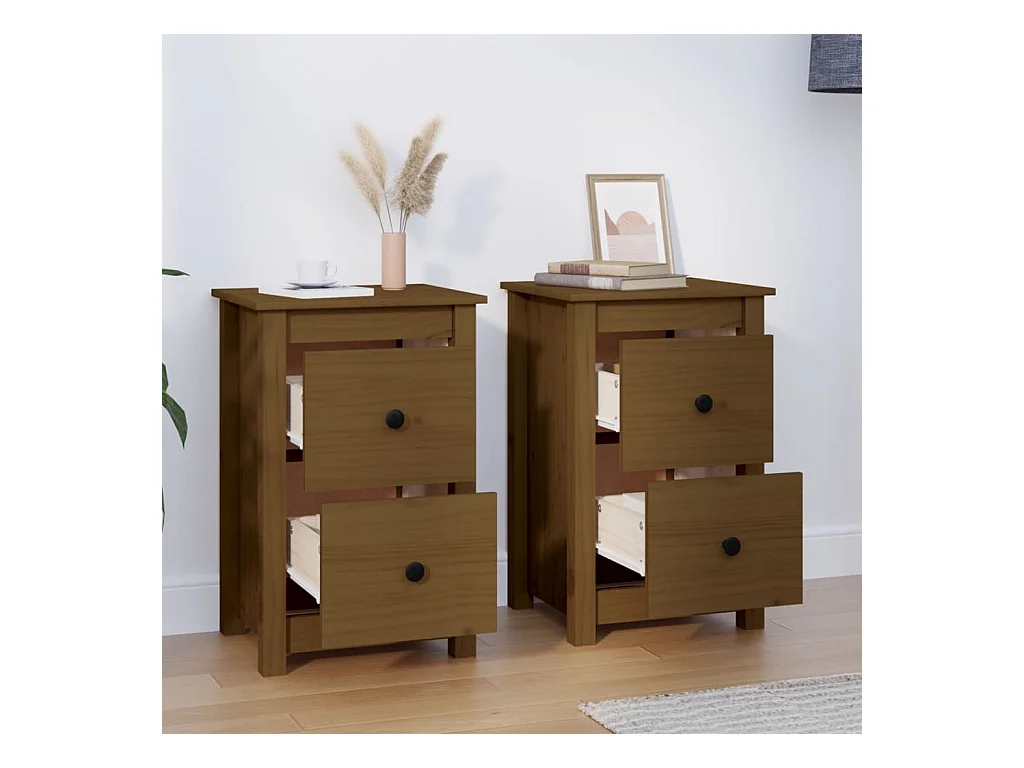 Mesitas de noche 2 uds madera de pino marrón miel 40x35x55 cm