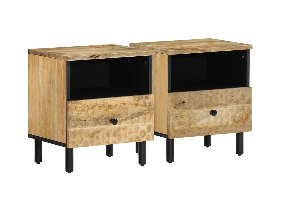 Mesitas de noche 2 uds madera maciza mango rugosa 40x34x46 cm ES752612