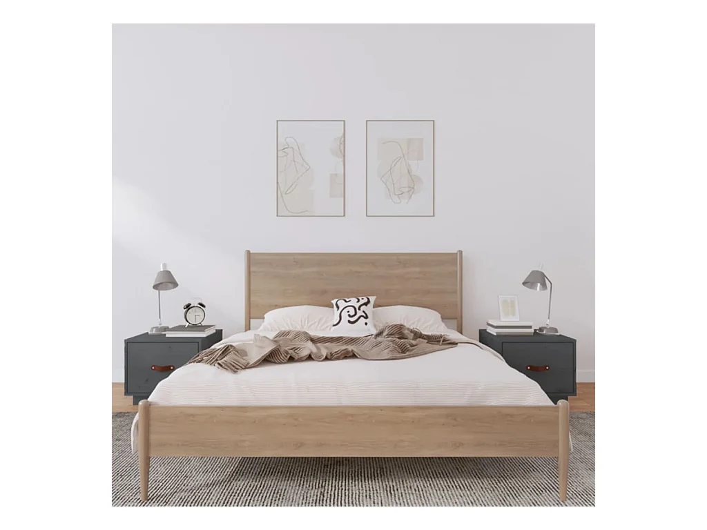 Mesitas de noche 2 uds madera maciza pino gris 40x34x45 cm