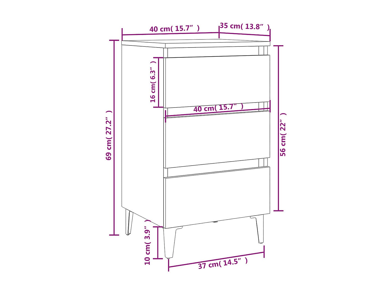 Mesitas de noche 2 uds patas de metal gris hormigón 40x35x69 cm