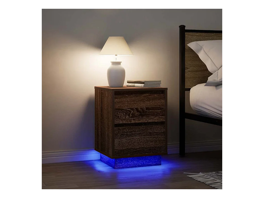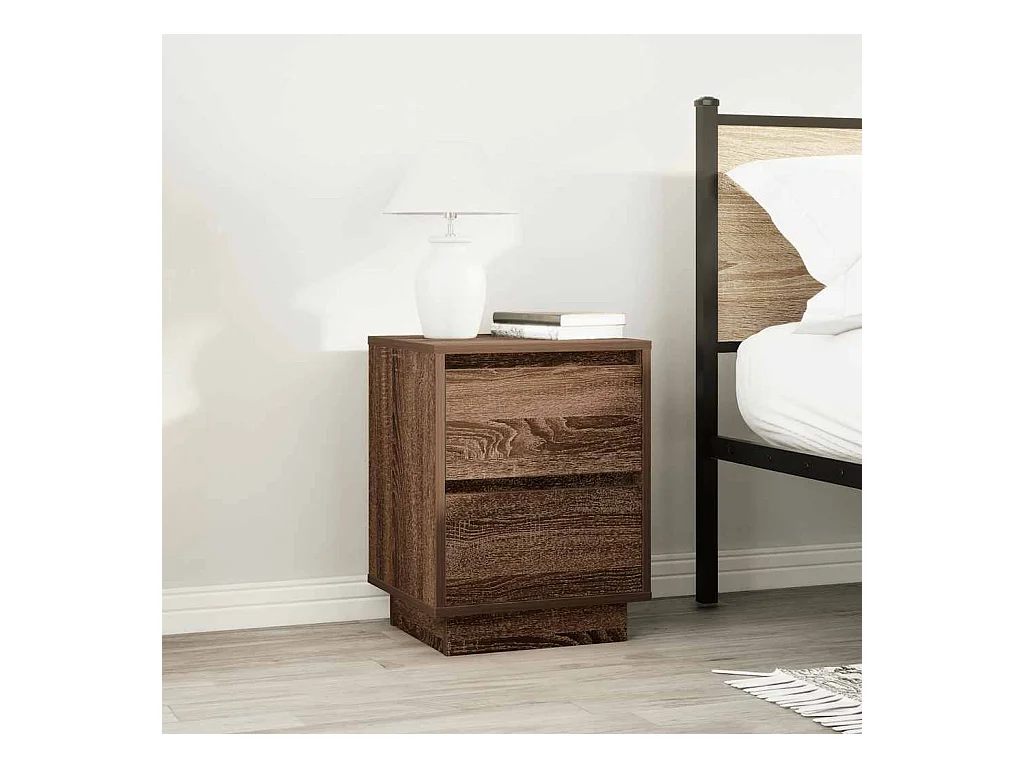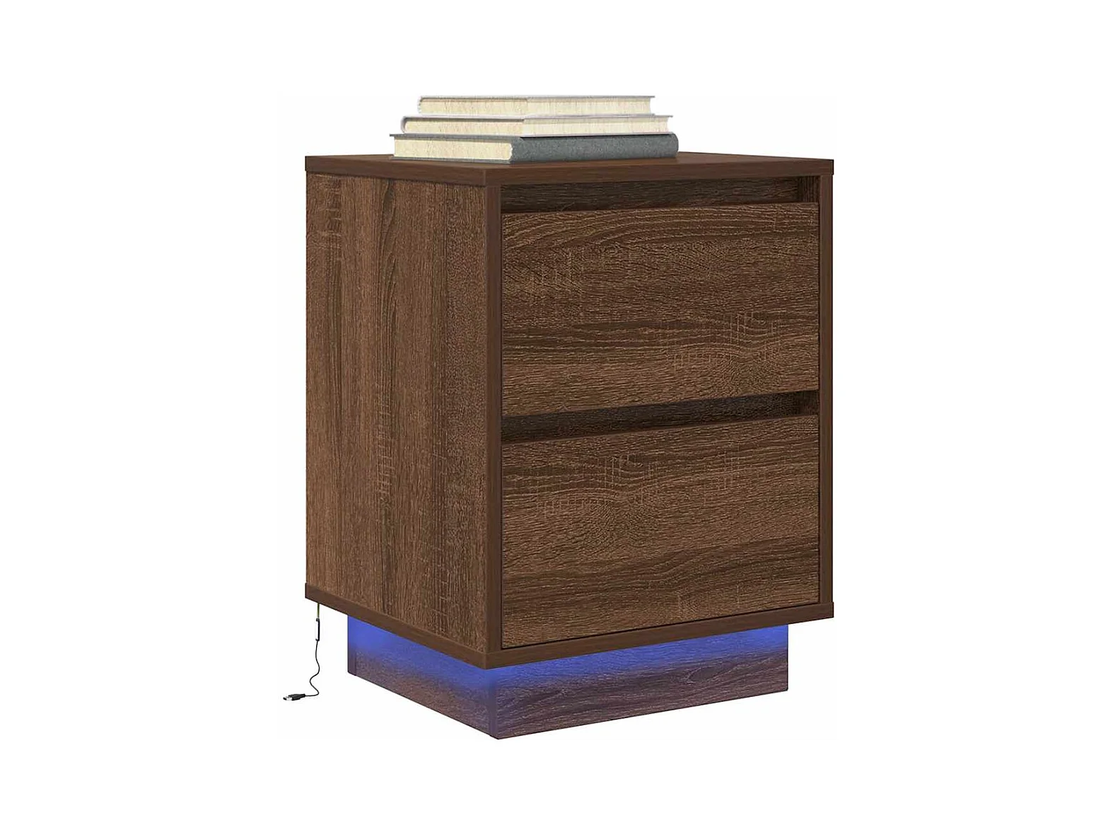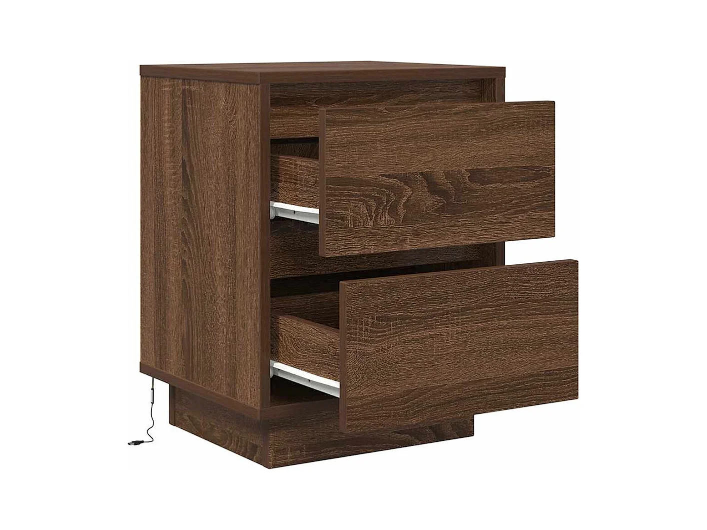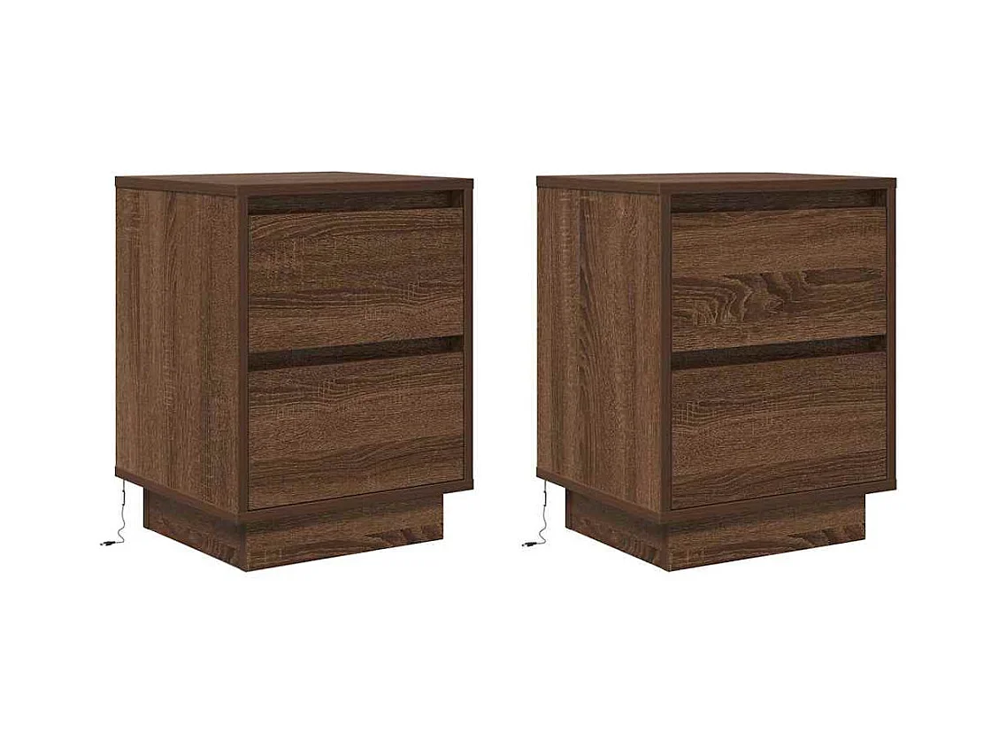 Mesitas de noche y luces LED 2 piezas marrón roble