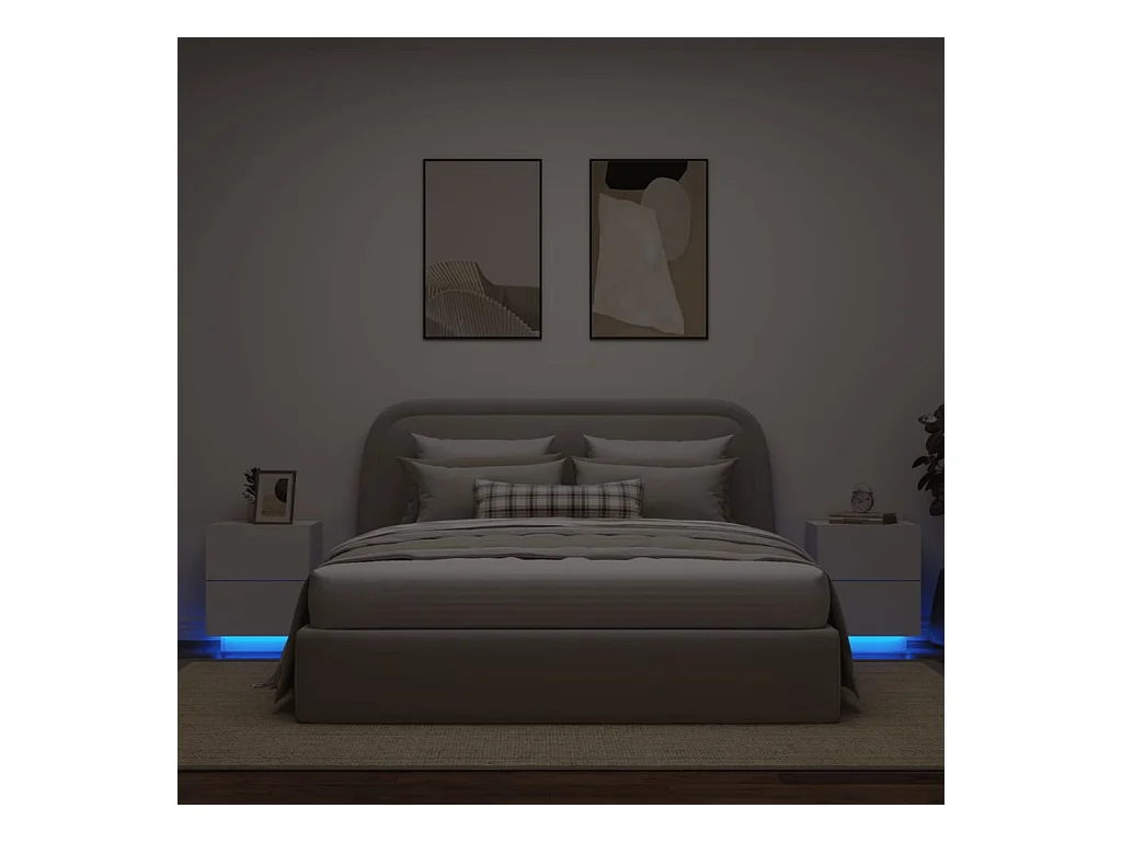 Mesitas de noche con luces LED 2 uds madera ingeniería blanca ES301096