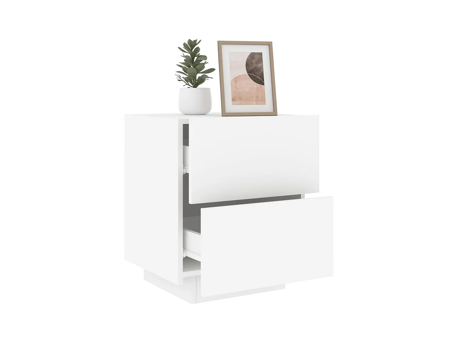 Mesita de noche con luces LED madera de ingeniería blanca ES438786