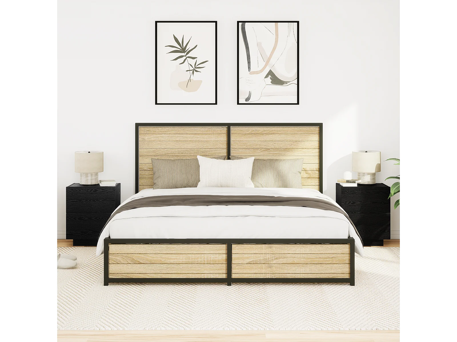 Mesitas de noche con luces LED 2 uds Roble negro 45x40x55 cm