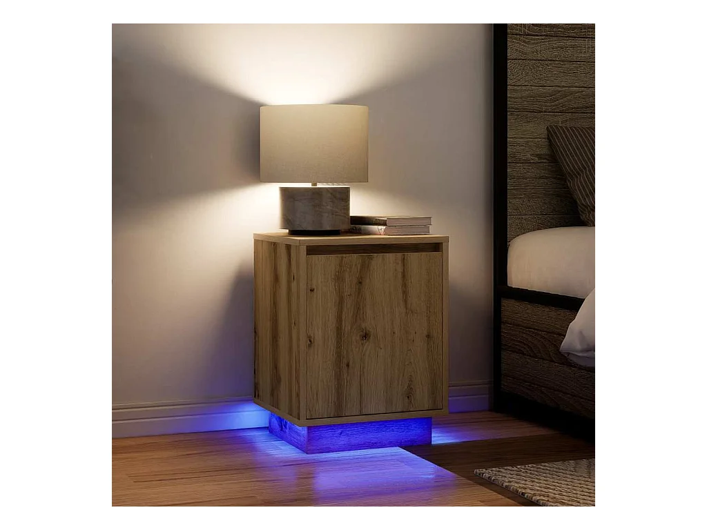 Mesitas de noche con luces LED, 2 unidades, roble artesanal, 38x34x50cm