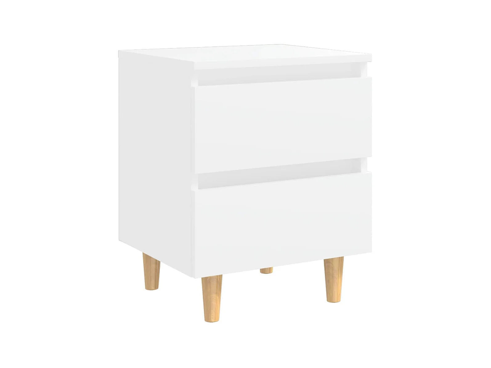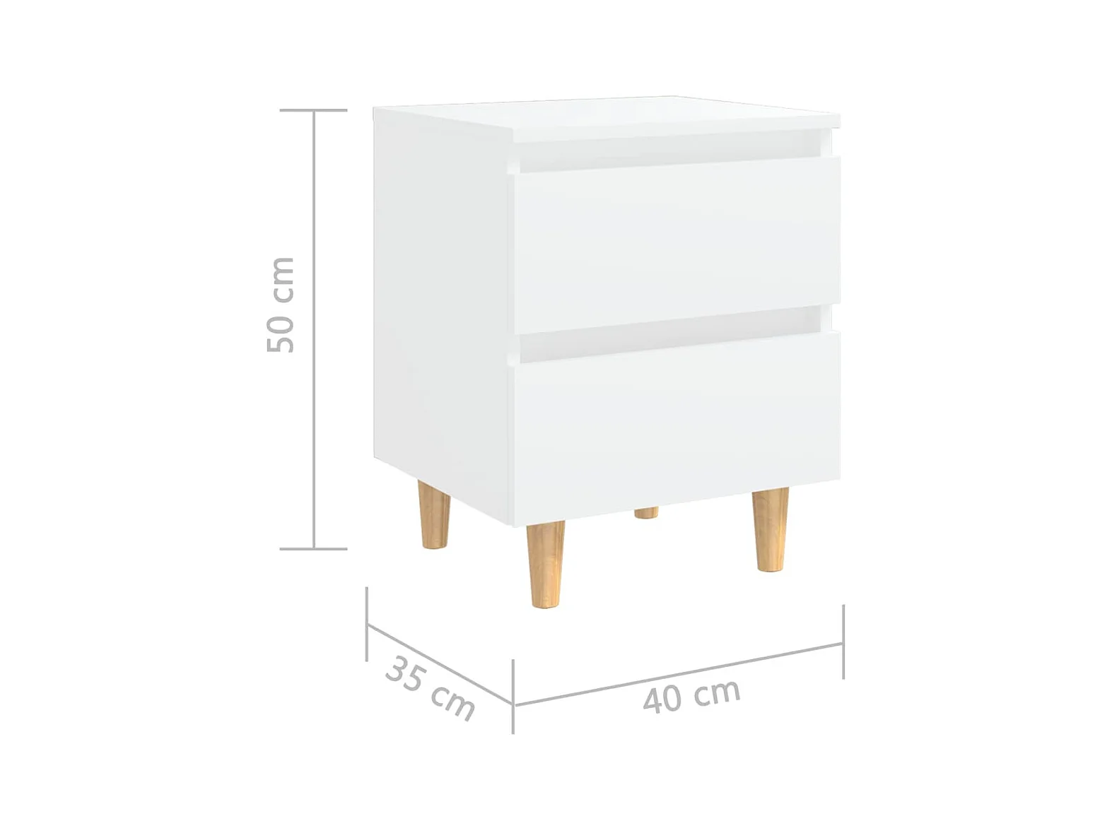 Mesitas de noche patas pino 2 uds Blanco brillo 40x35x50 cm