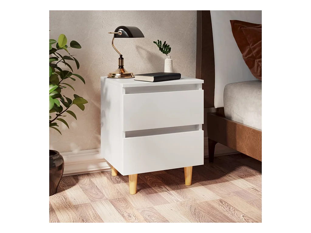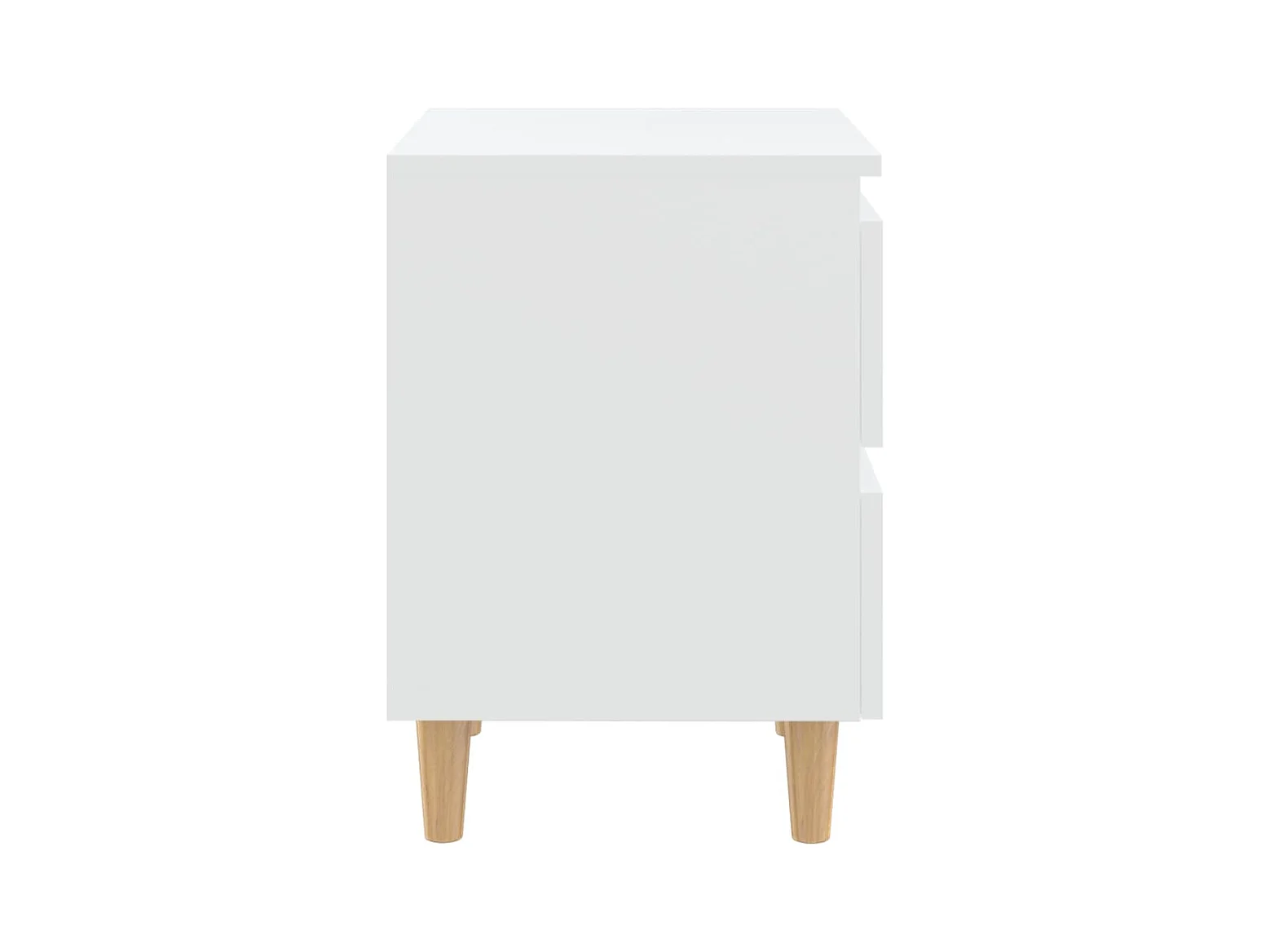 Mesita de noche con patas de madera blanca brillo 40x35x69 cm