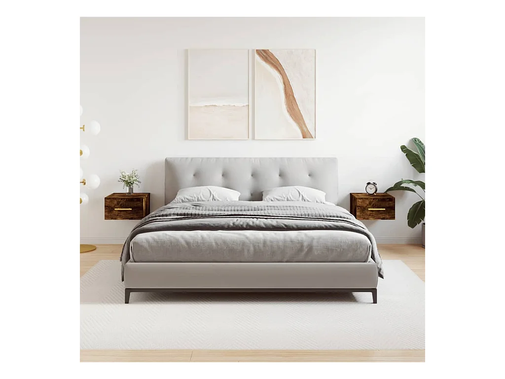 Mesitas de noche de pared 2 uds color roble ahumado 35x35x20 cm