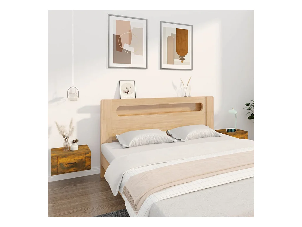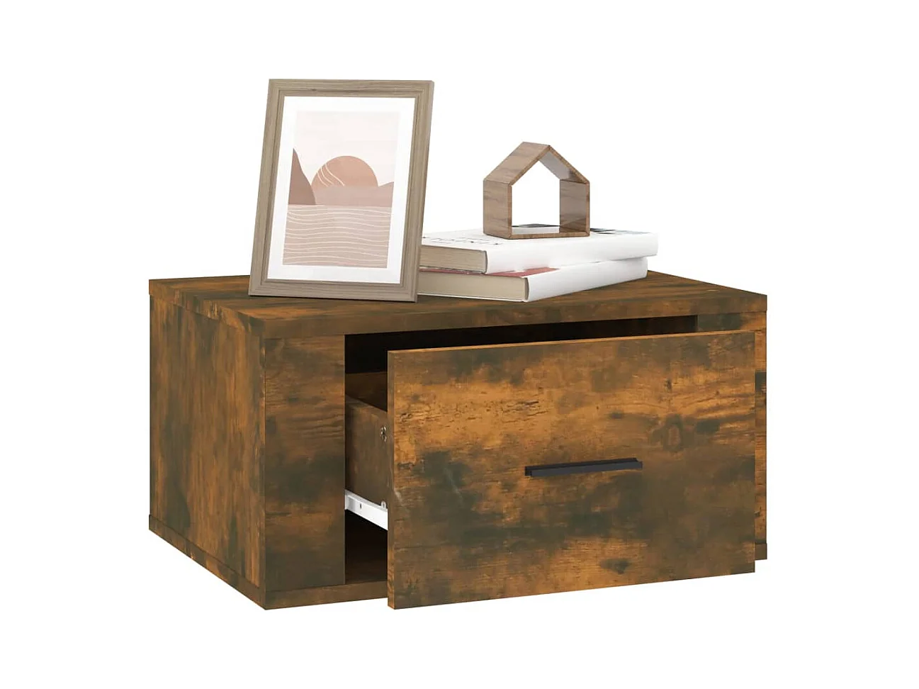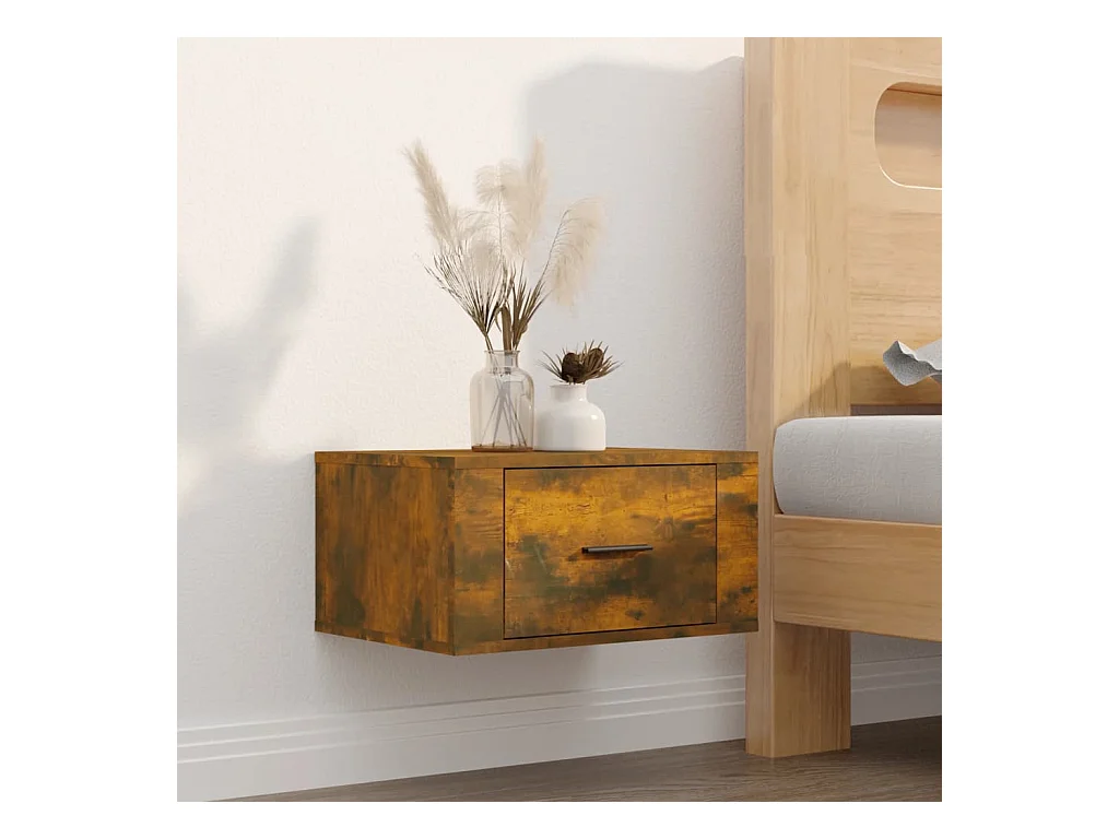 Mesitas de noche de pared 2 uds color roble ahumado 50x36x25 cm