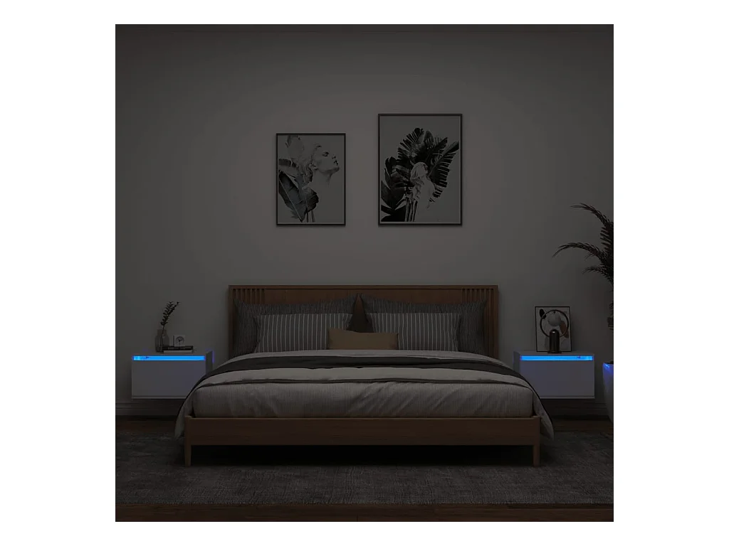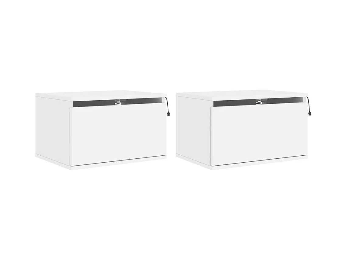 Mesitas de noche de pared con luces LED 2 piezas blancas