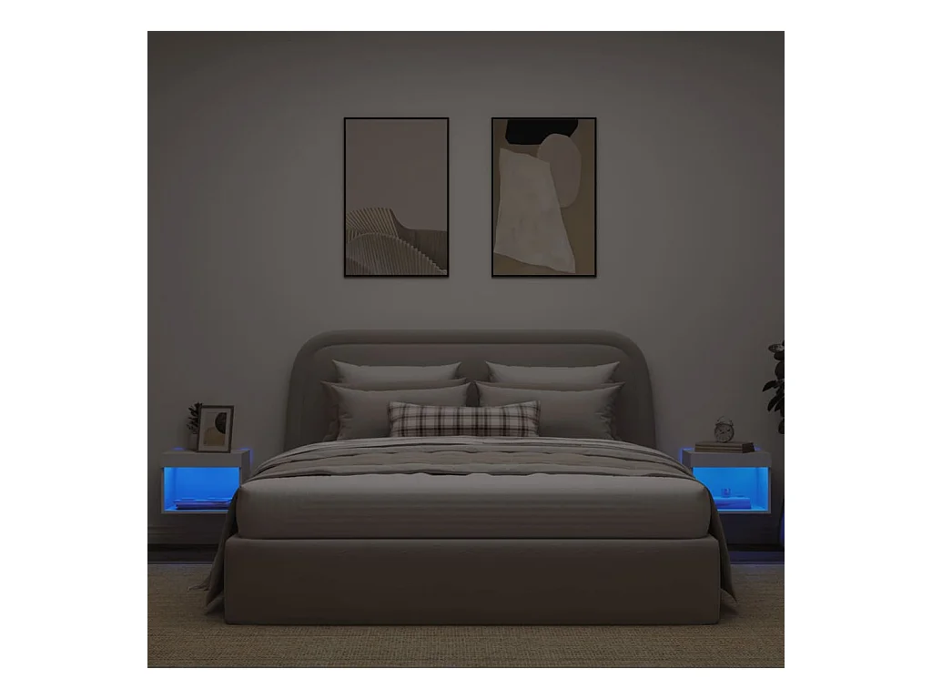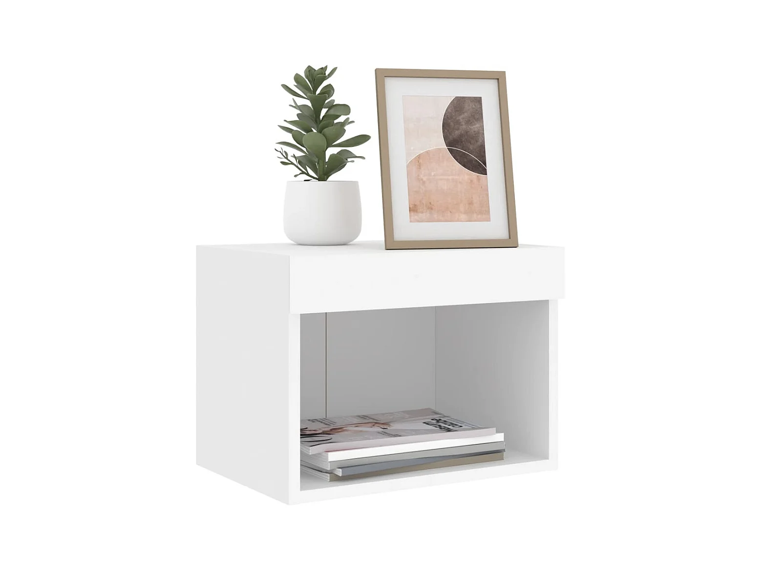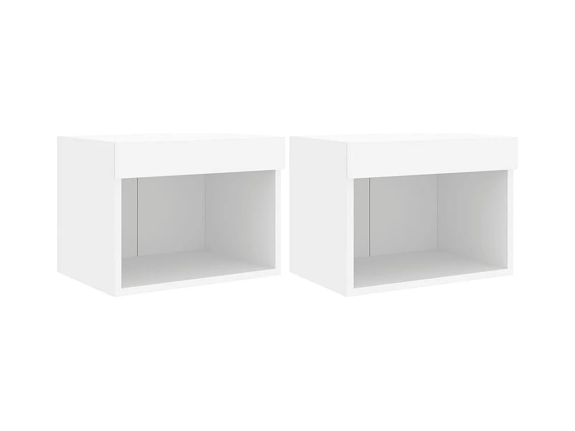 Mesitas de noche de pared con luces LED 2 piezas blancas